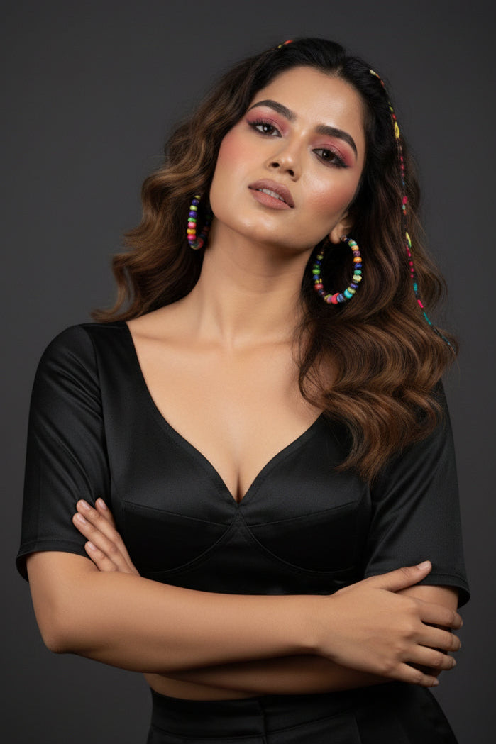 Made Of Vichitra Silk-Designer Blouse(Black)