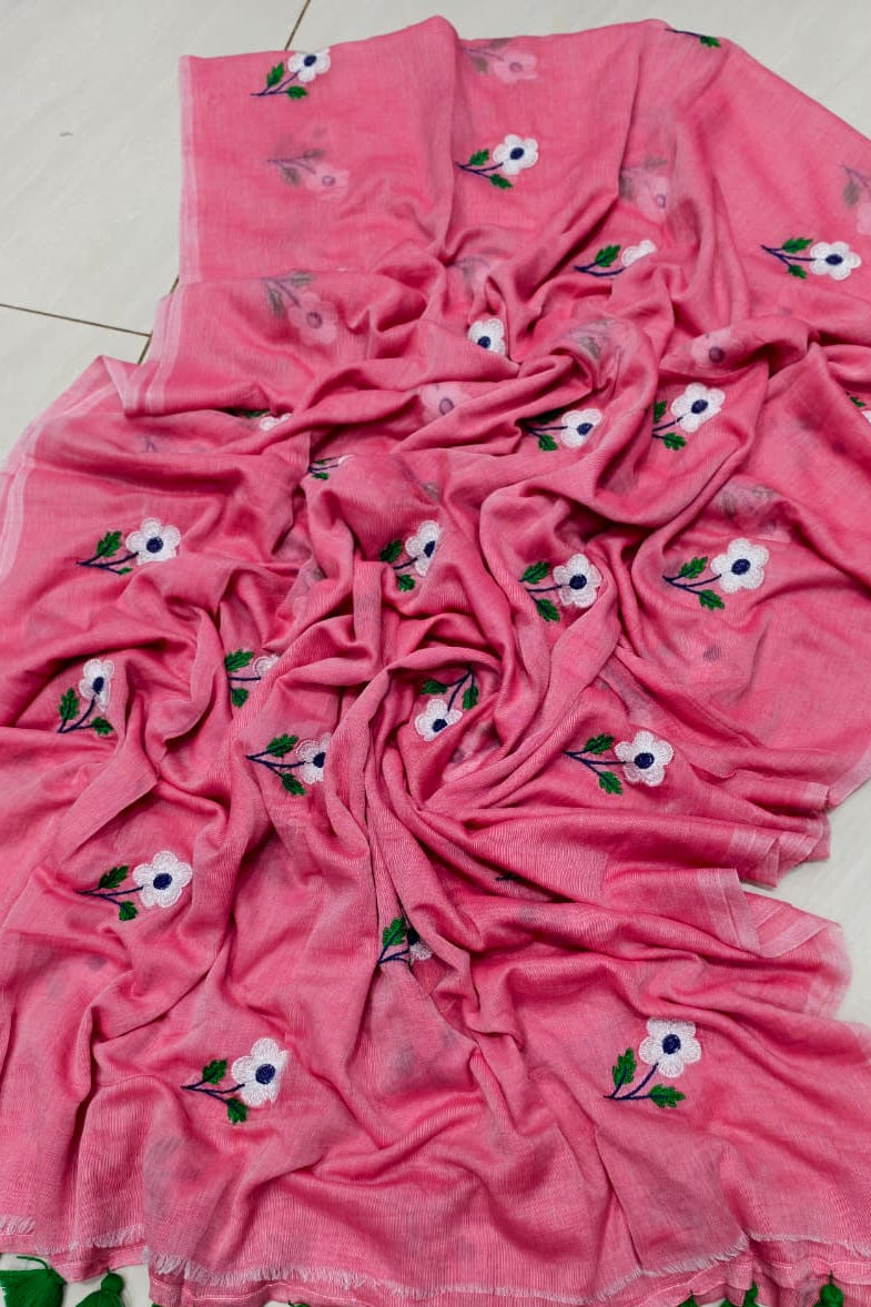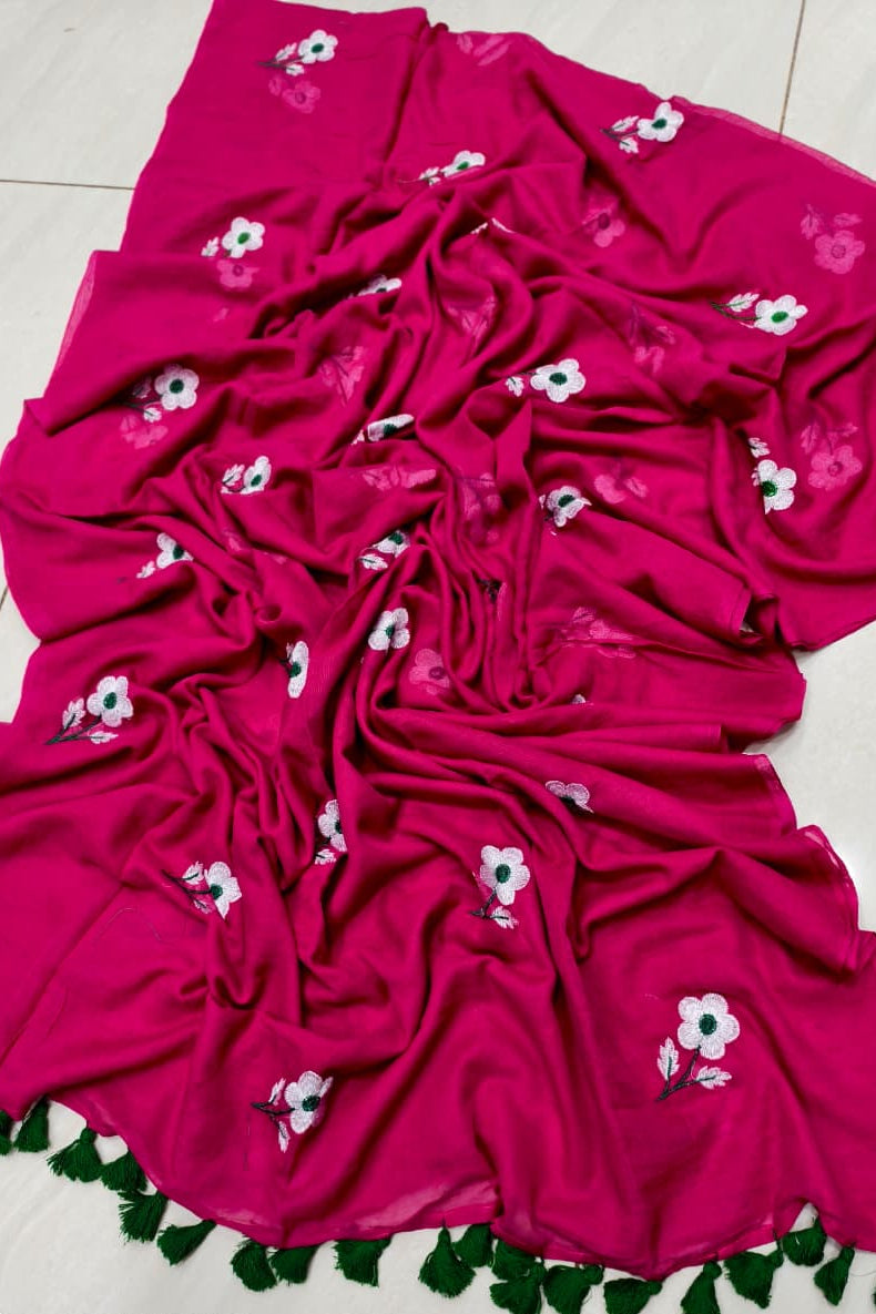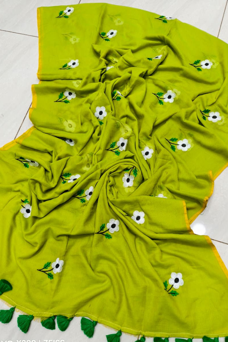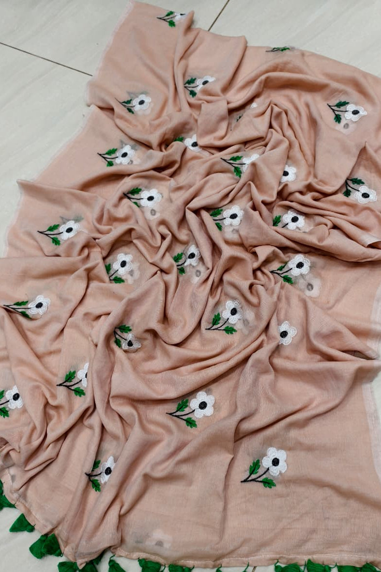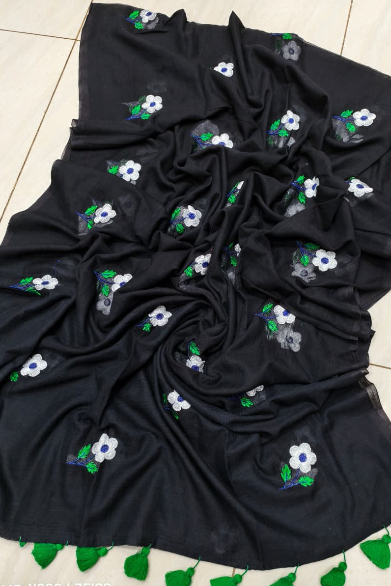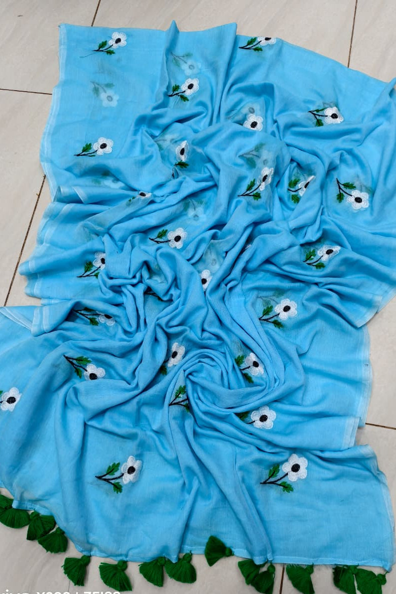 True Love Embroidery Mul Cotton Saree