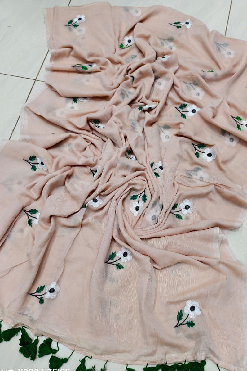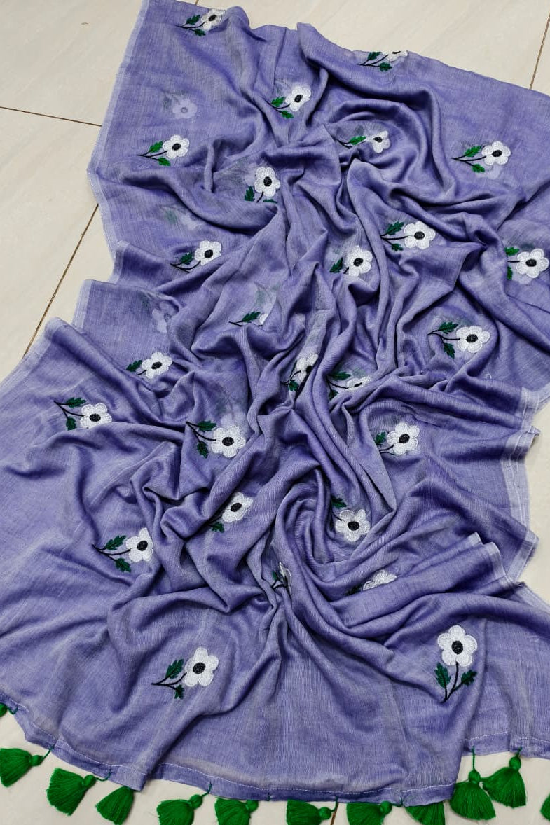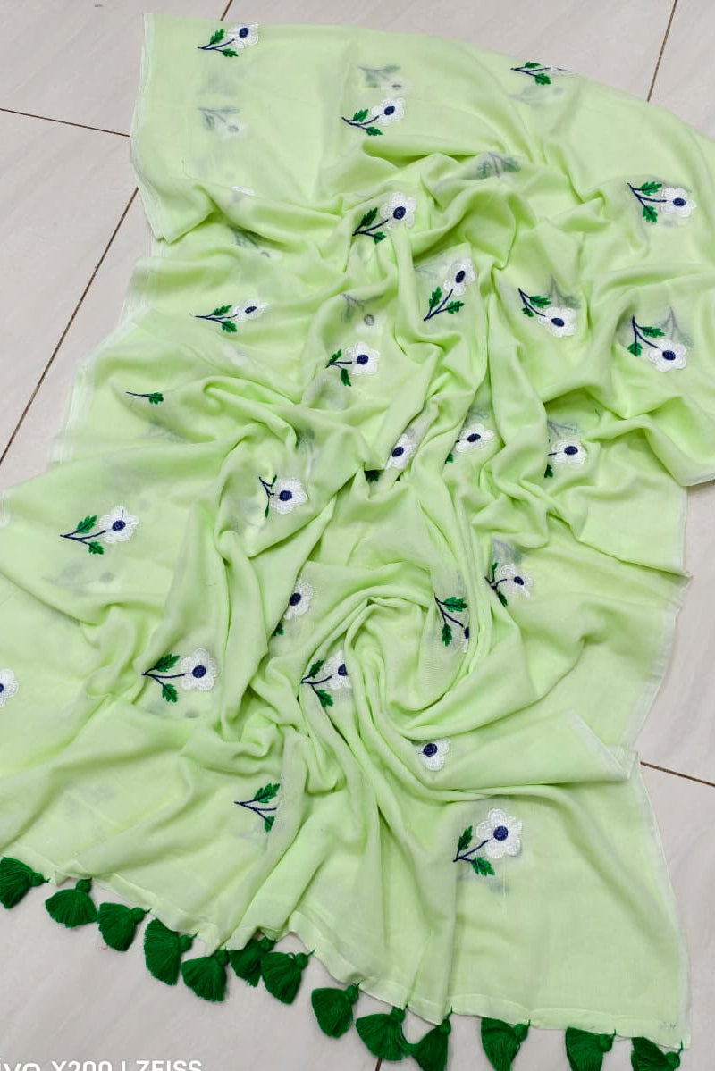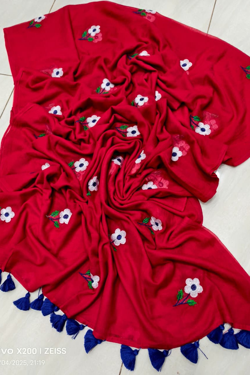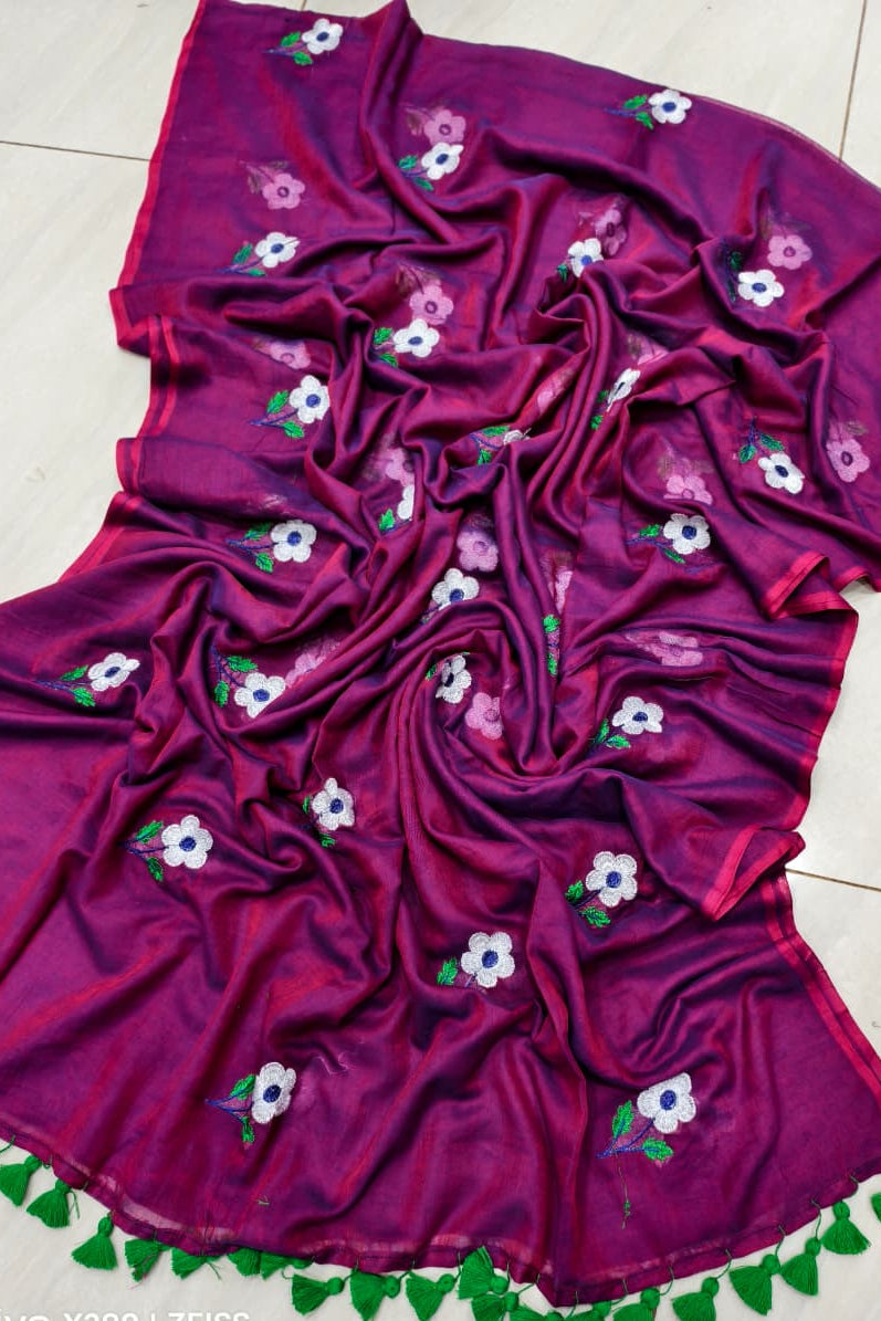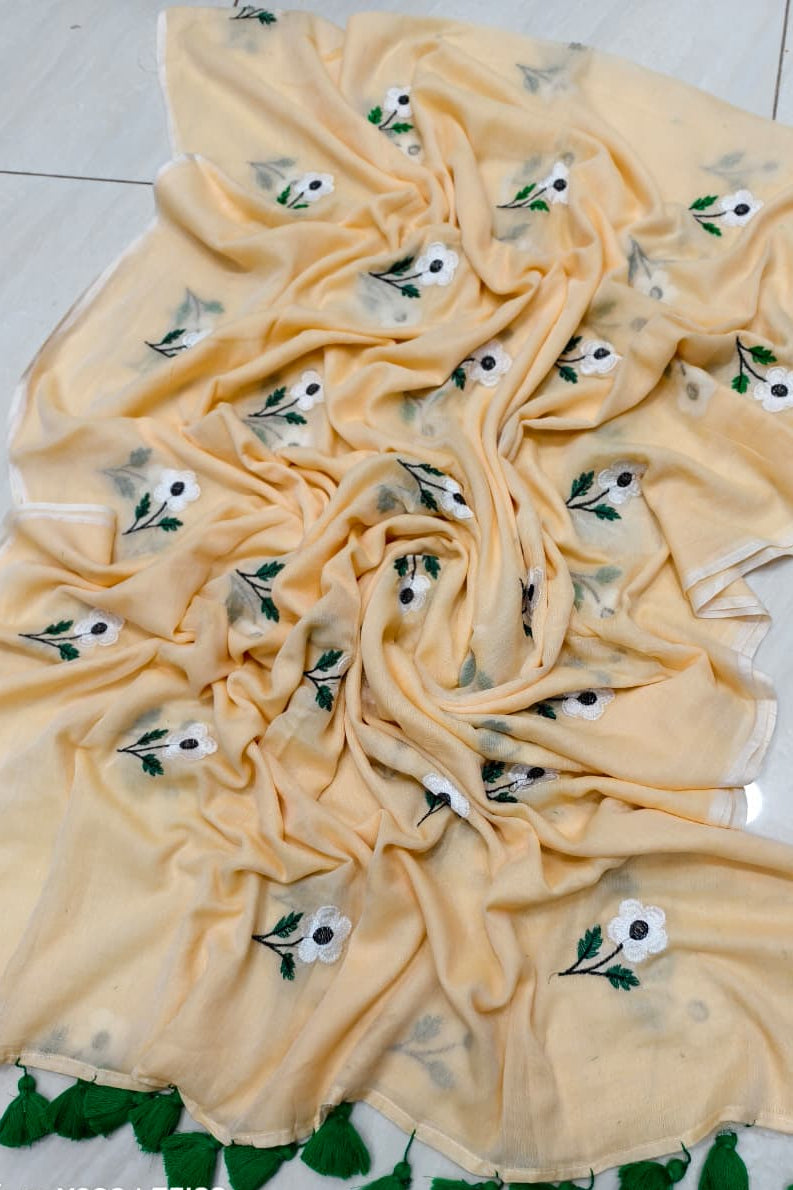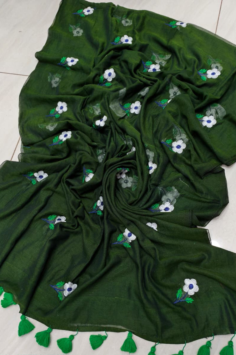 True Love Embroidery Mul Cotton Saree
