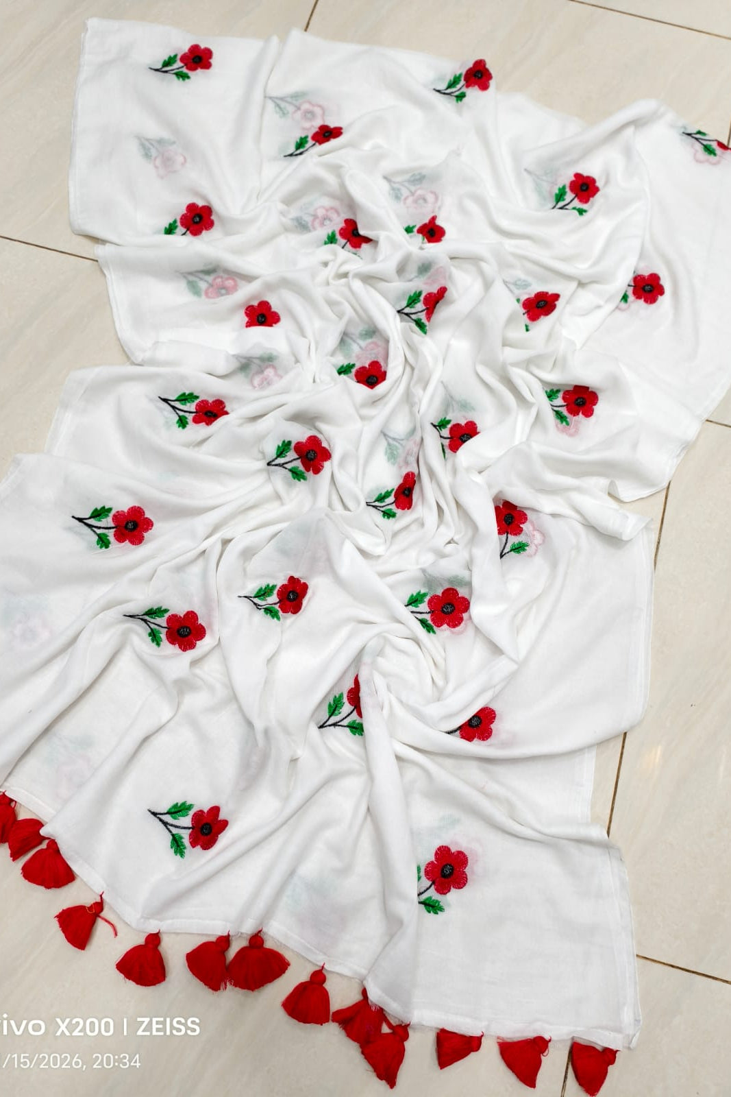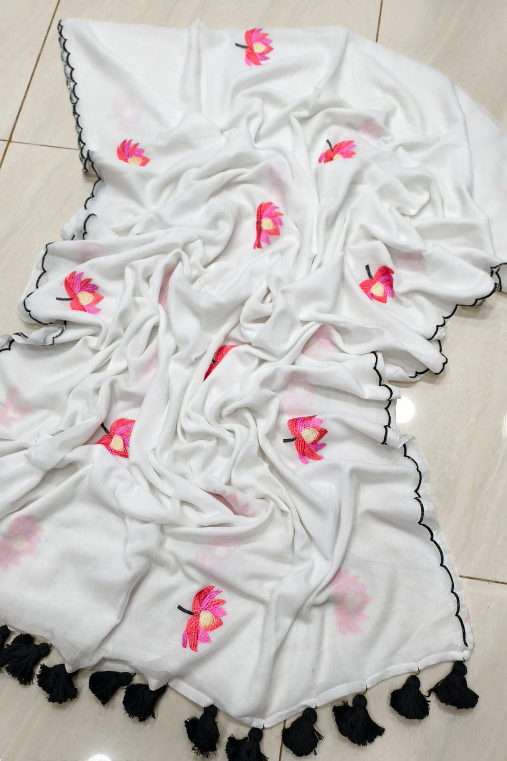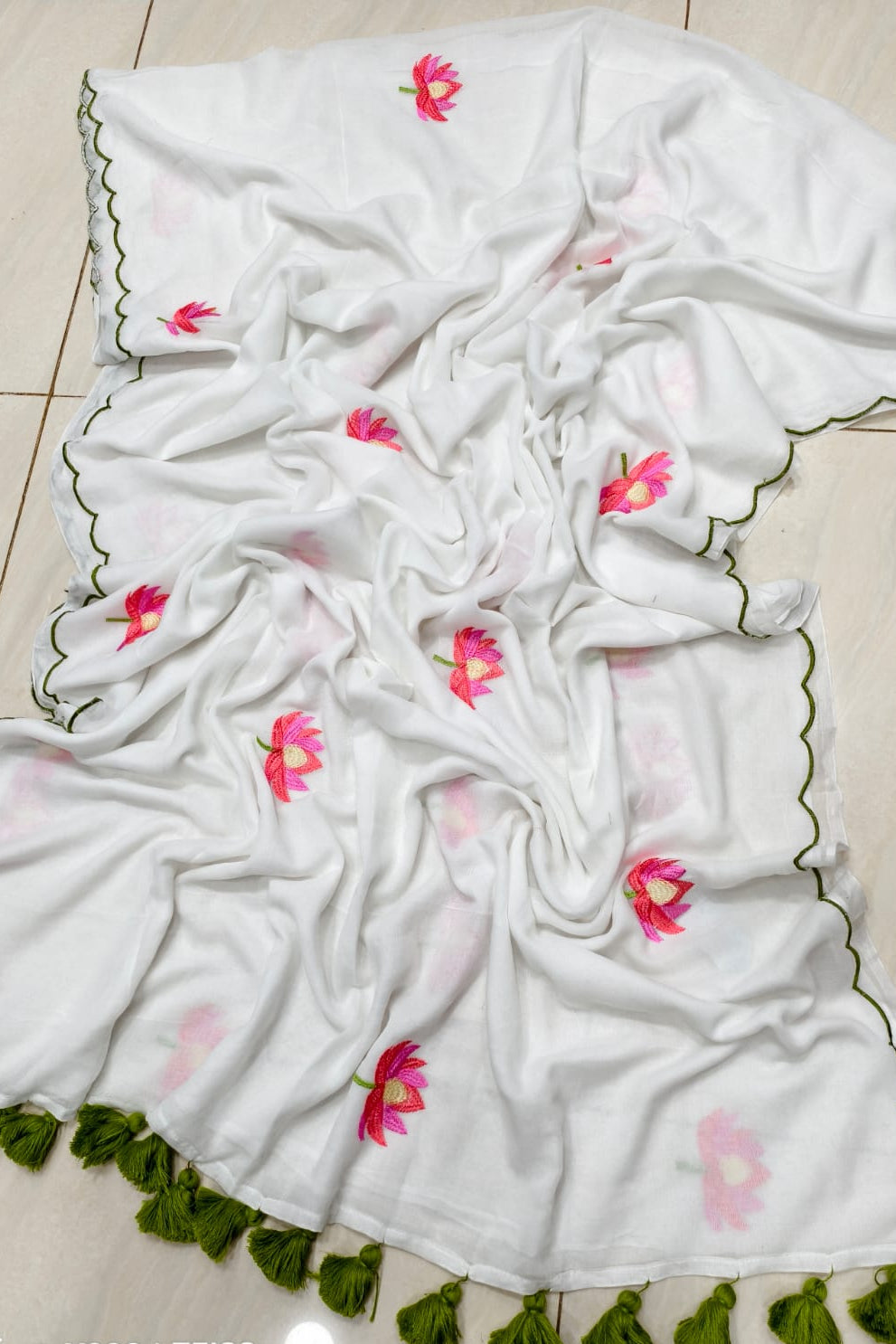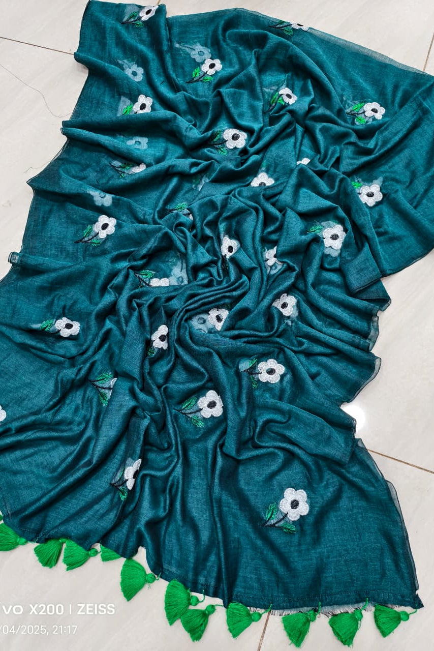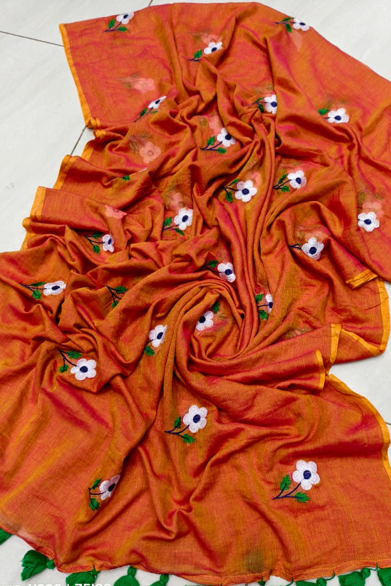 True Love Embroidery Mul Cotton Saree
