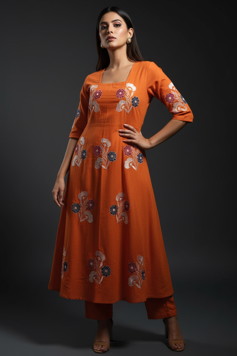 Introducing our soft Cotton Kurti Set a timeless classic for versatile elegance. This stunning Kurti set features likes floral Embroidery work that is trendy and gorgeous. Made with high-quality cotton slub , this set is not only cool but also comfortable to wear. Elevate your style game with this must-have set!