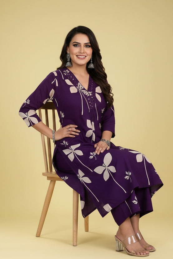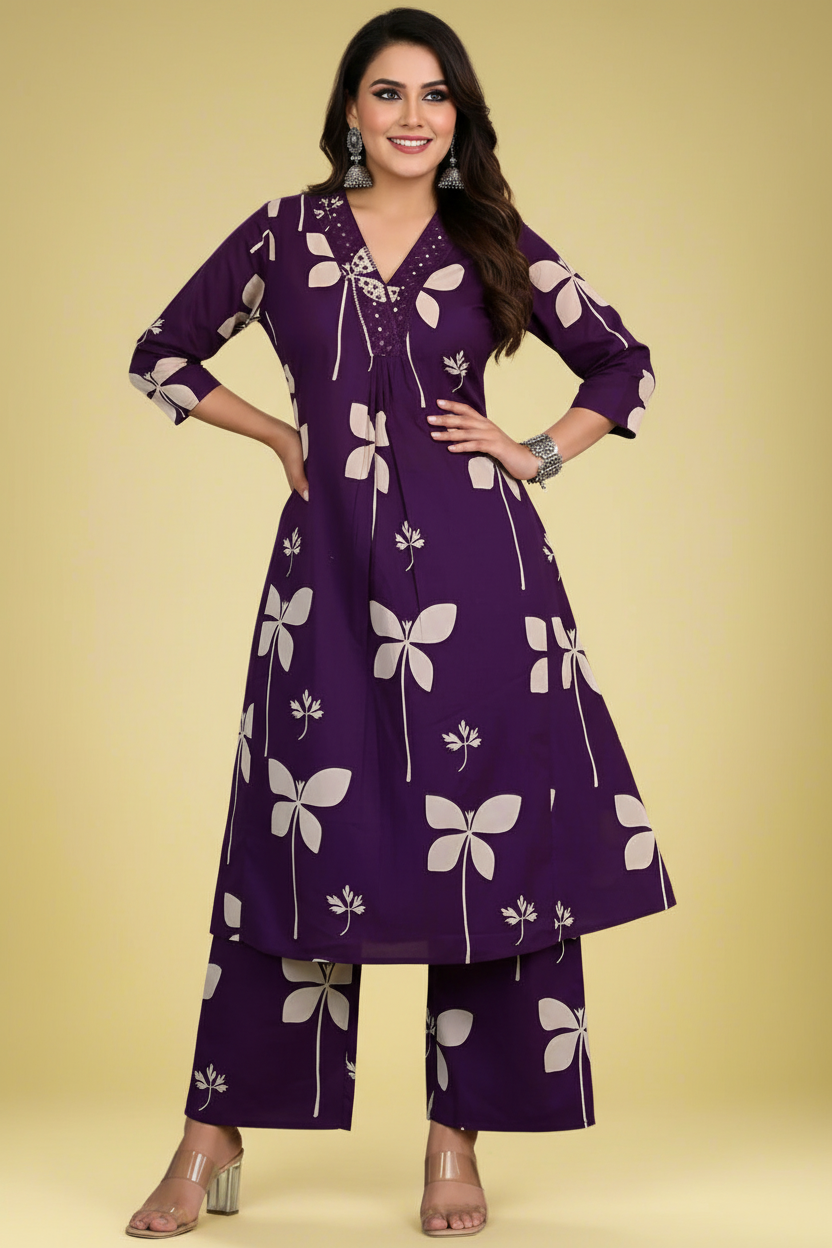 Introducing our Solid Colors Cotton Coord Set a timeless classic for versatile elegance. This stunning coords set features likes flower print with embroidery work that is trendy and gorgeous. Made with high-quality cotton , this set is not only cool but also comfortable to wear. Elevate your style game with this must-have set.