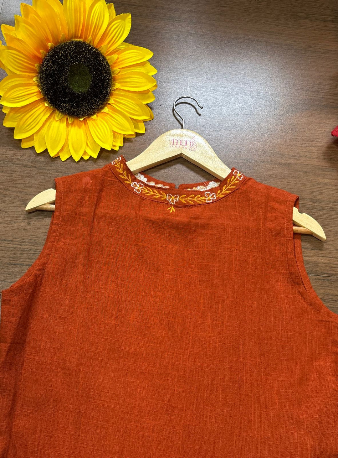 Welcoming our timeless classic for versatile elegance Sweet Festive Cotton Coord Set. This stunning coord set features likes embroidery work that is trendy and gorgeous. Made with high-quality cotton slub , this set is not only cool but also comfortable to wear. Elevate your style game with this must-have set!