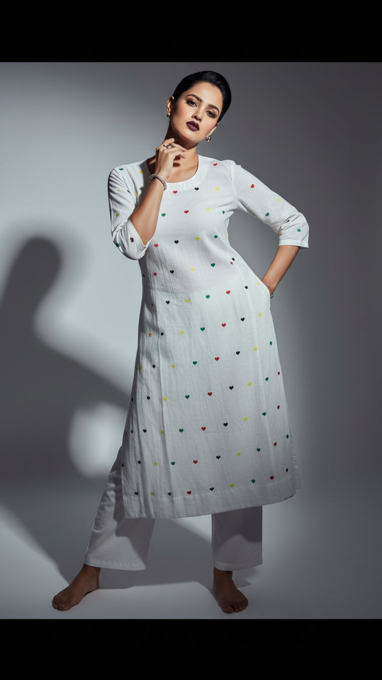 White With Fun Khadi Cotton Kurti Set