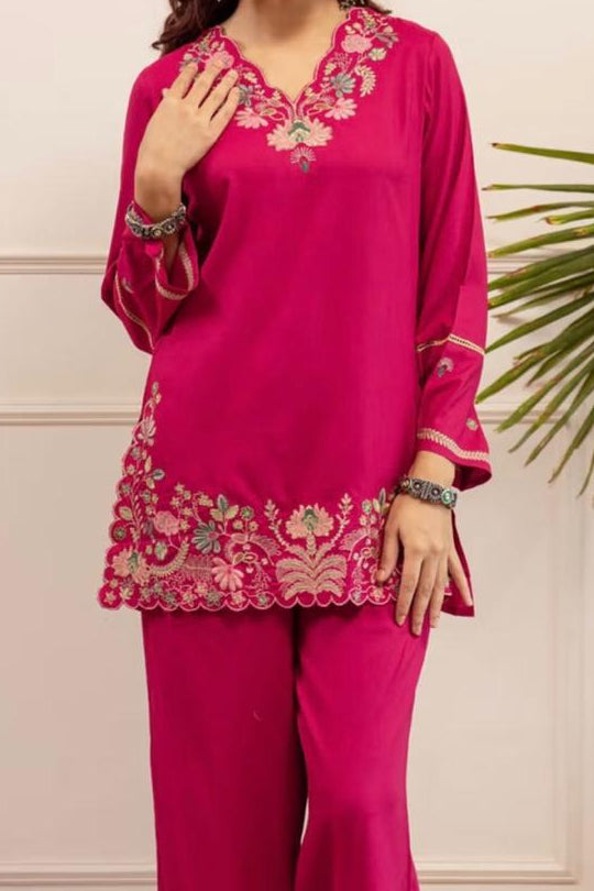 Introducing our Cotton Coord Set a timeless classic for versatile elegance. This stunning coords set features likes embroidery work that is trendy and gorgeous. Made with high-quality cotton flex , this set is not only cool but also comfortable to wear. Elevate your style game with this must-have set!