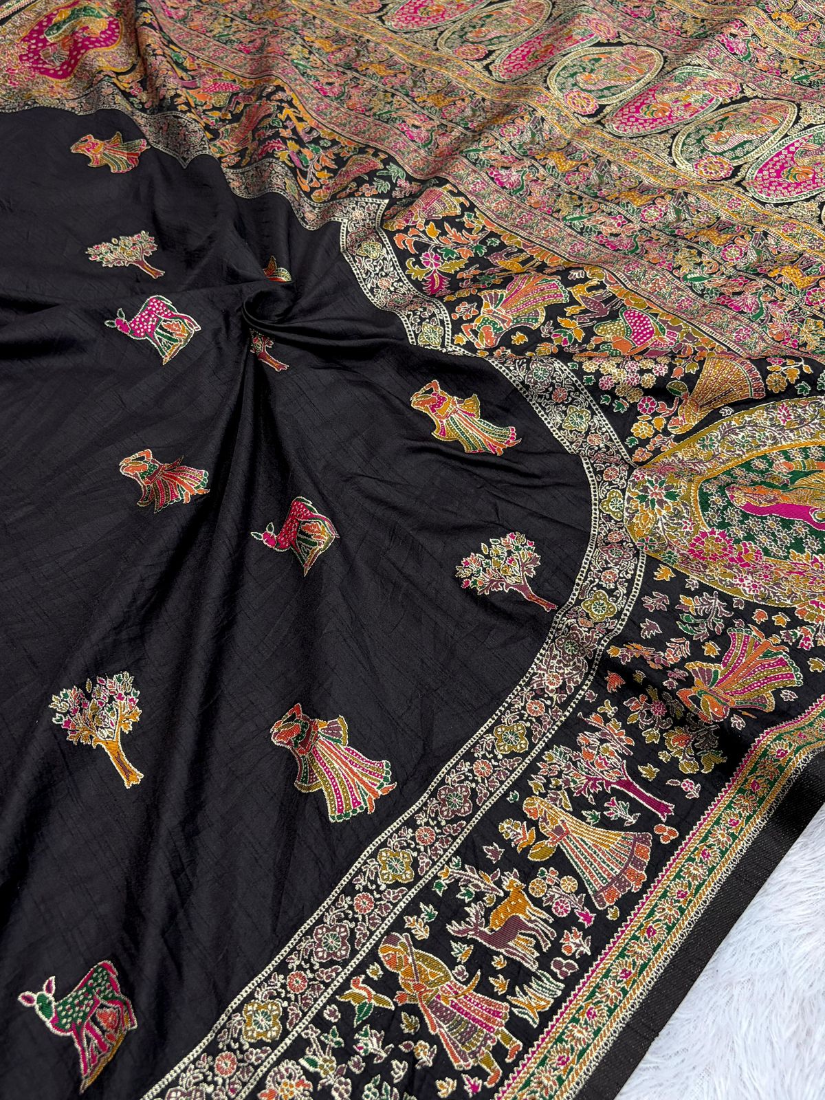 Experience the refined beauty of pashmina Silk Saree namely Her Essence Designer Pashmina Silk Saree, featuring exquisite Kashmiri thread weaving all over. Get ready to turn heads in this Silk Saree! With all-over weaving , this saree effortlessly combines traditional elegance with modern style. Perfect for any occasion, this saree will make you stand out from the crowd!
