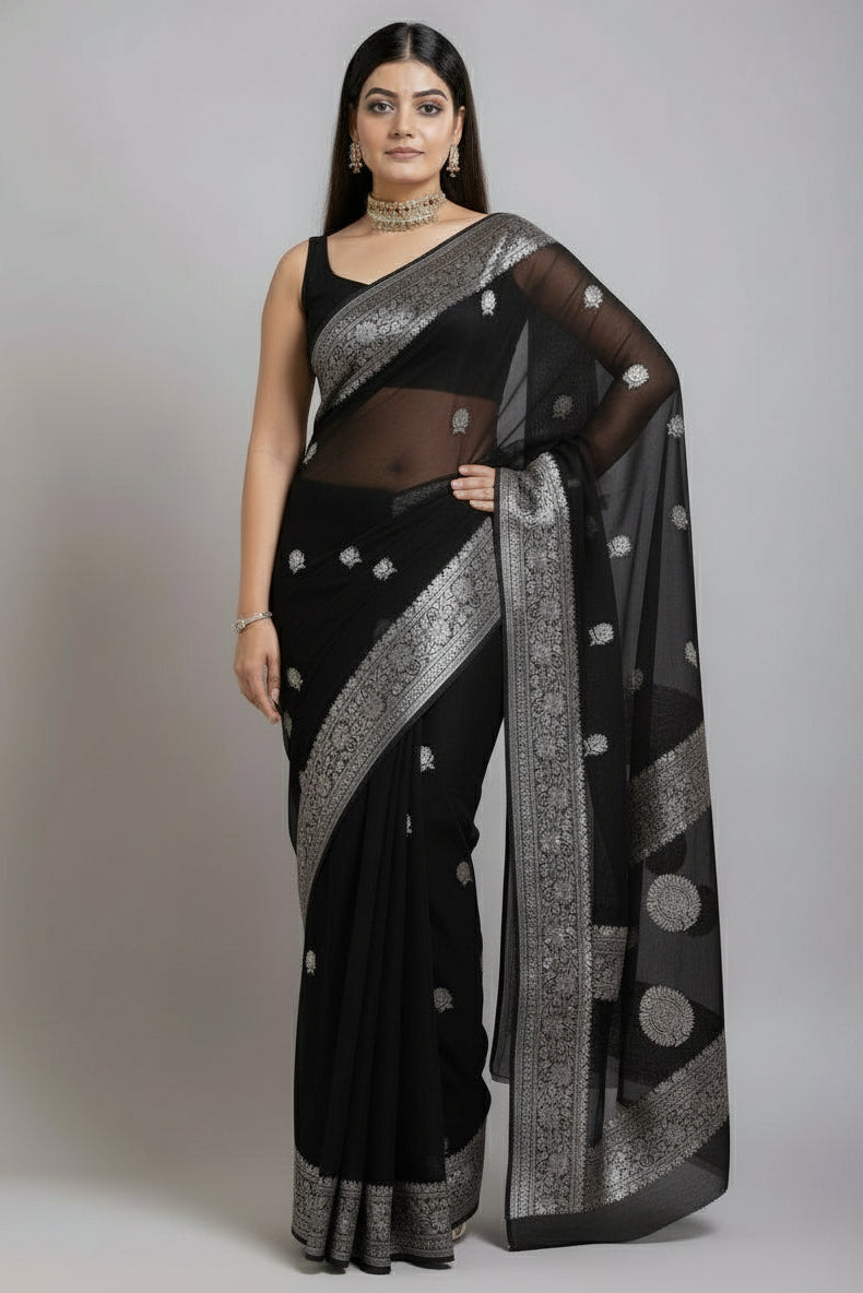 Black Ruby Khaddi Chiffon Banarasi Saree