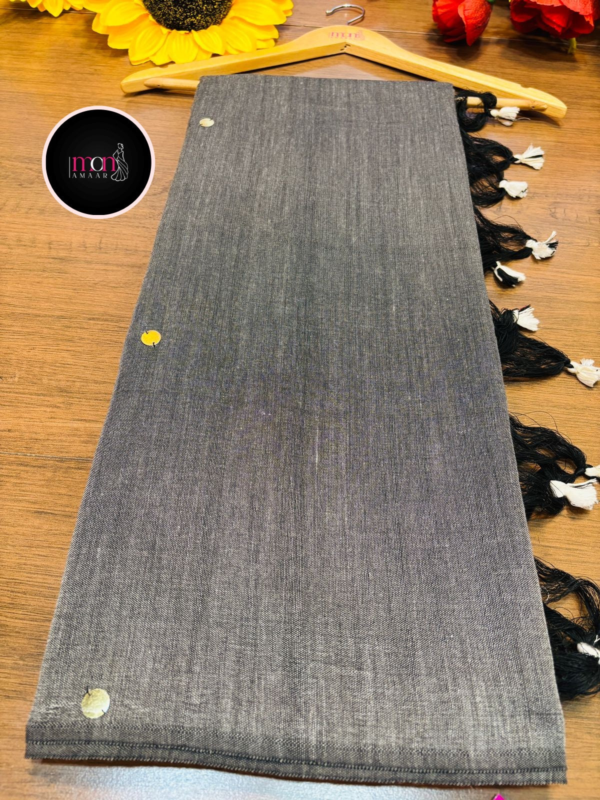 Gray Coin Bengal Khadi Saree
