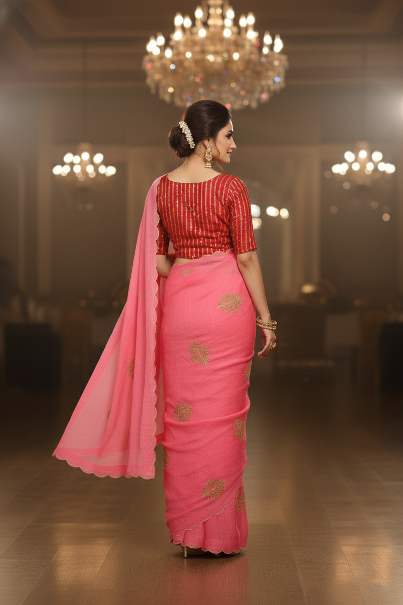 Feel like a star in this stunning Designer Organza Saree! Its shimmering material and intricate design will captivate all and make you stand out at any gathering. With a perfect balance of comfort and fashion, this saree is a must-have for any memorable occasion. Get ready to shine and be the center of attention with this saree!