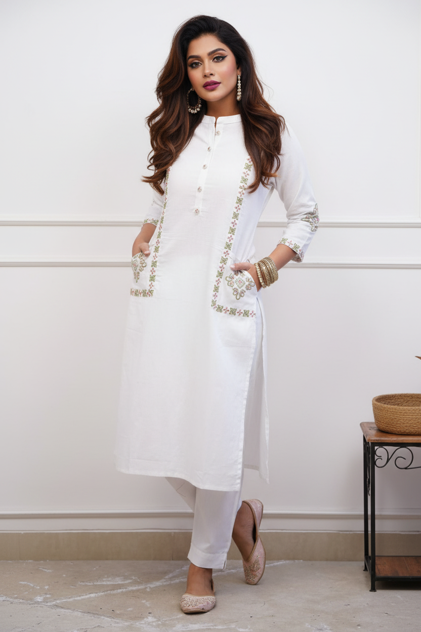Wrapped In White Cotton Kurti Set