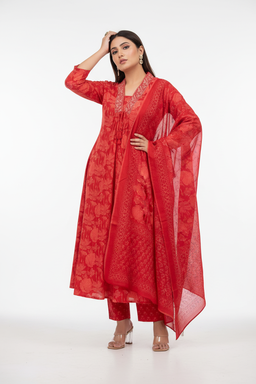 Red Scenario Cotton Coord Set
