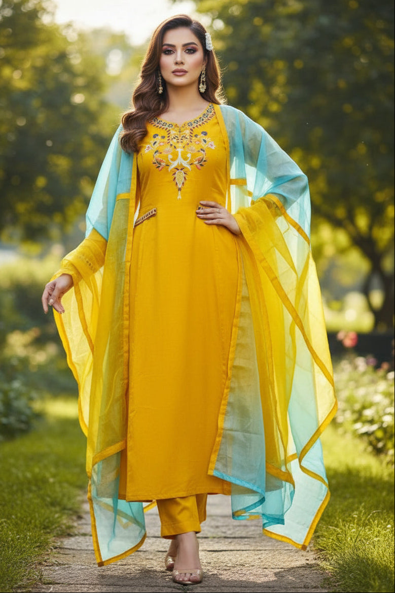 Impressive Yellow Rayon Kurti Set