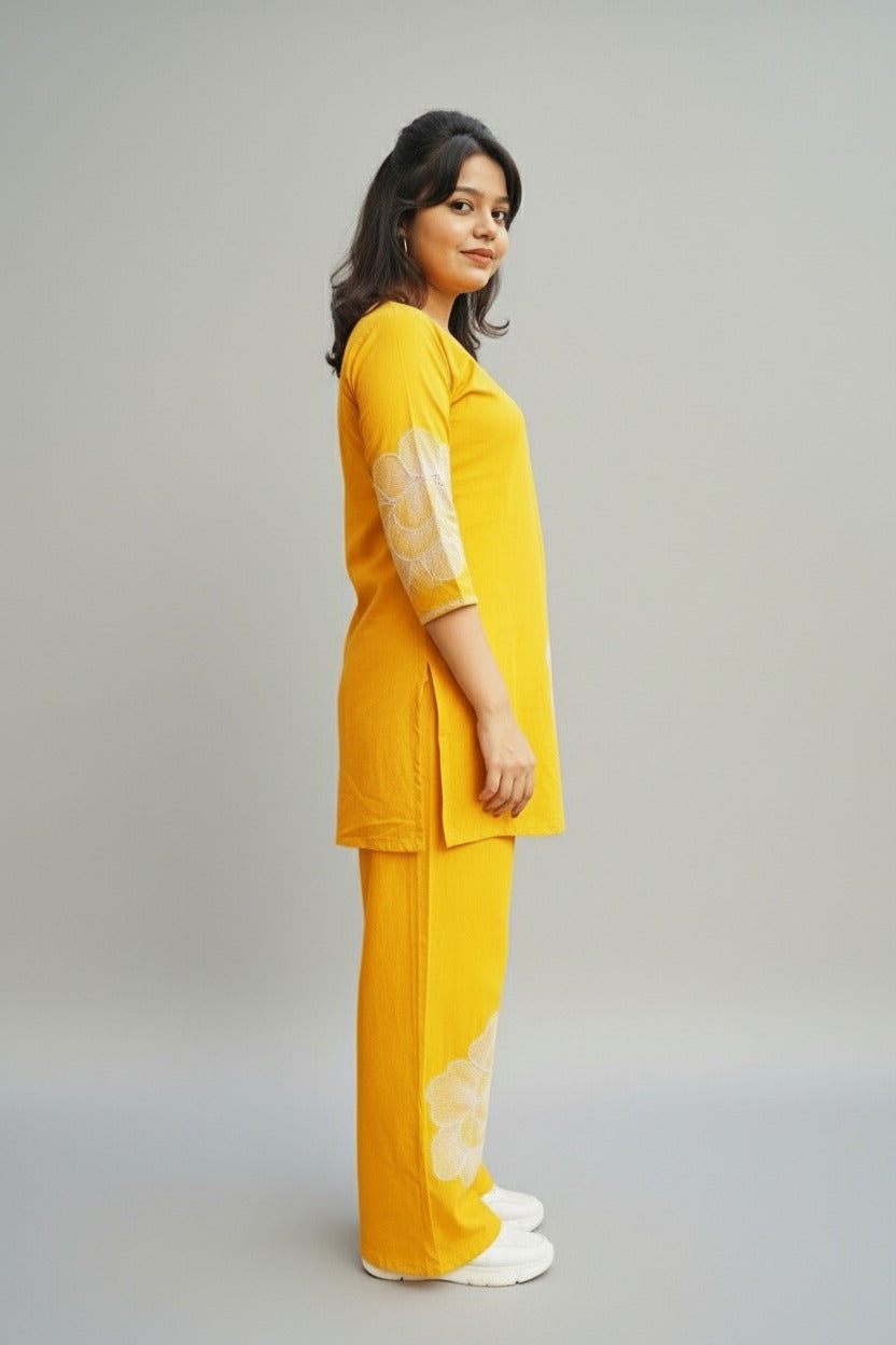 Step out in style with this Cotton Co-ord set. Featuring a Cotton top , trendy flared Pant, this perfect-for-all-occasions set will make you feel confident and beautiful. Vibe with the trend, do the right thing, and make a wish with this gorgeous set.