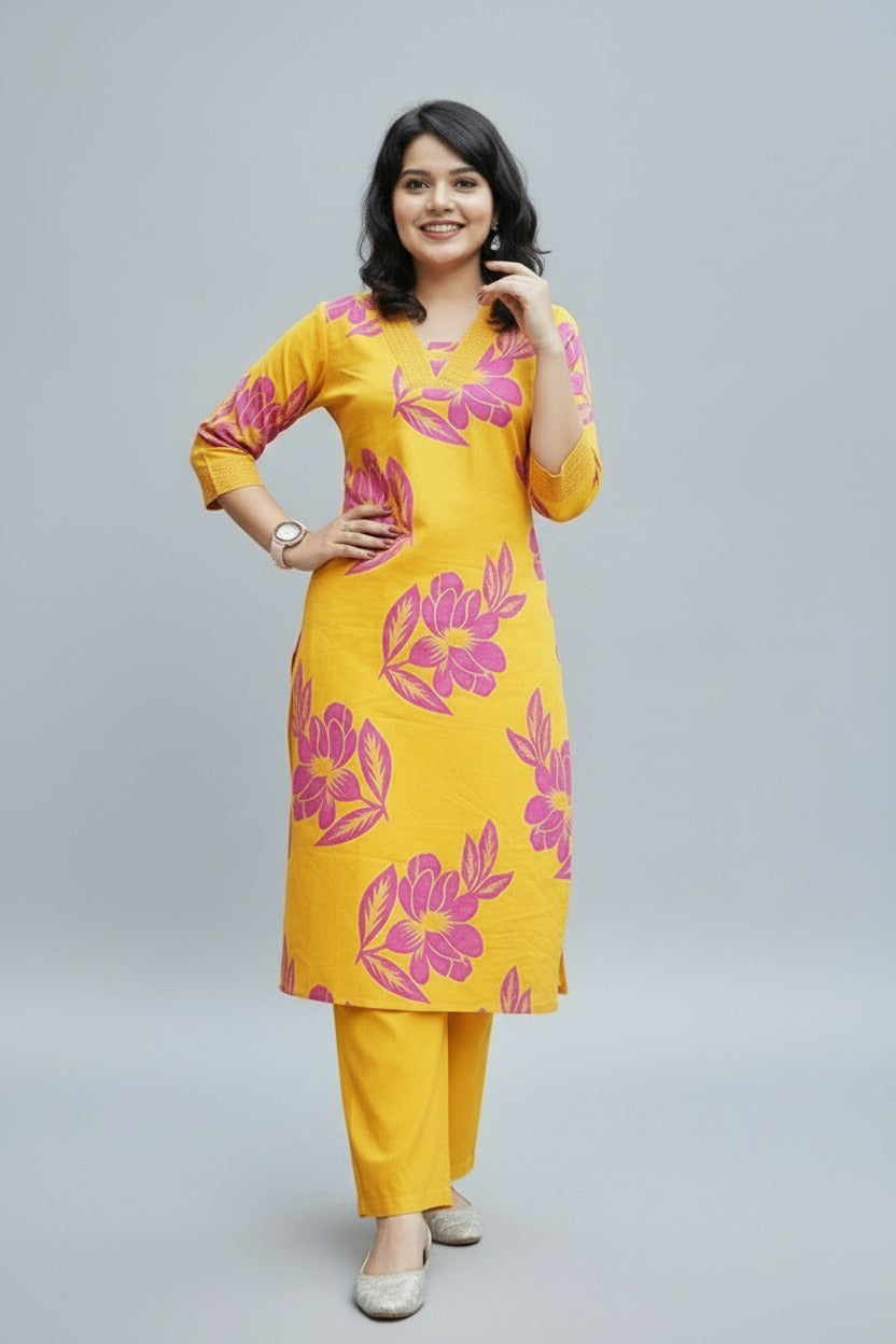 This Set features Printed work , its Kurti and matching pant make it an eye-catching ,perfect for any occasion, Office wear, casual outings.