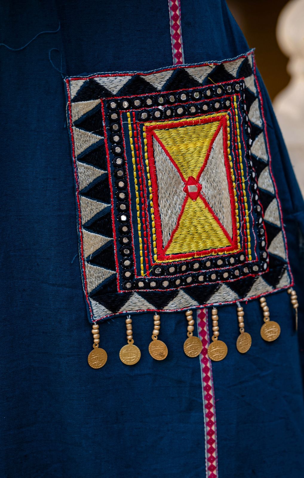 - Both side full embroidered pocket on kurti with coin work