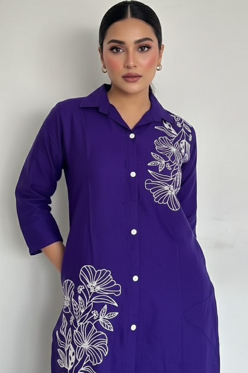 Turn heads and own every moment in this statement-making coord set. Featuring a vibrant top and perfectly tailored pants, this duo is a celebration of color, confidence, and contemporary style. The bold embroidery work and vivid palette exude personality, while the flattering fit makes it ideal for both power meetings and spontaneous weekend plans. Dress it up, dress it down—this set is your new go-to for effortlessly standout style.