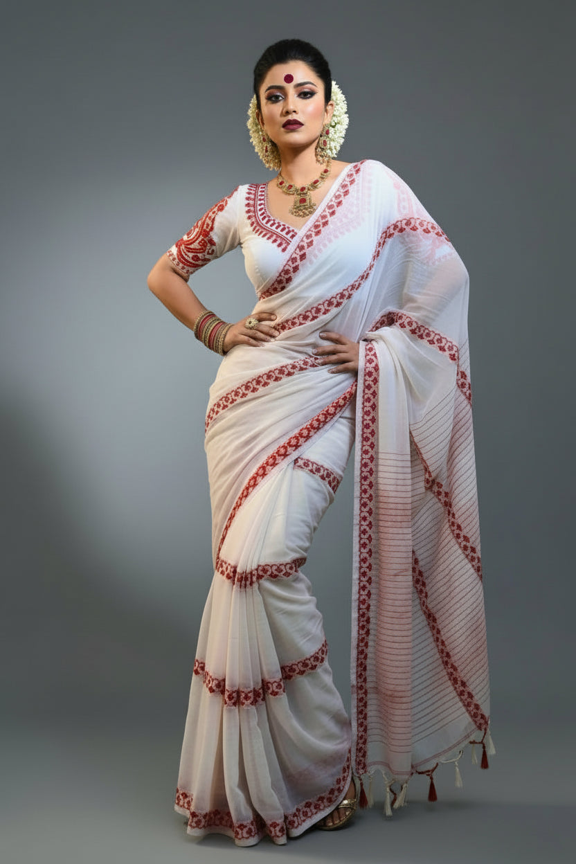 Love in Contrast - Exclusive Cotton Saree with Ready Made Designer Blouse