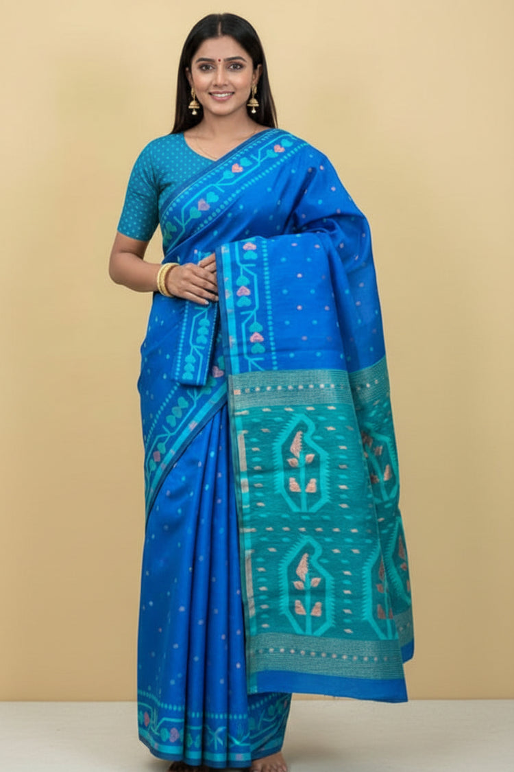Gagan- Limitless Sky (Blue Khadi Saree)
