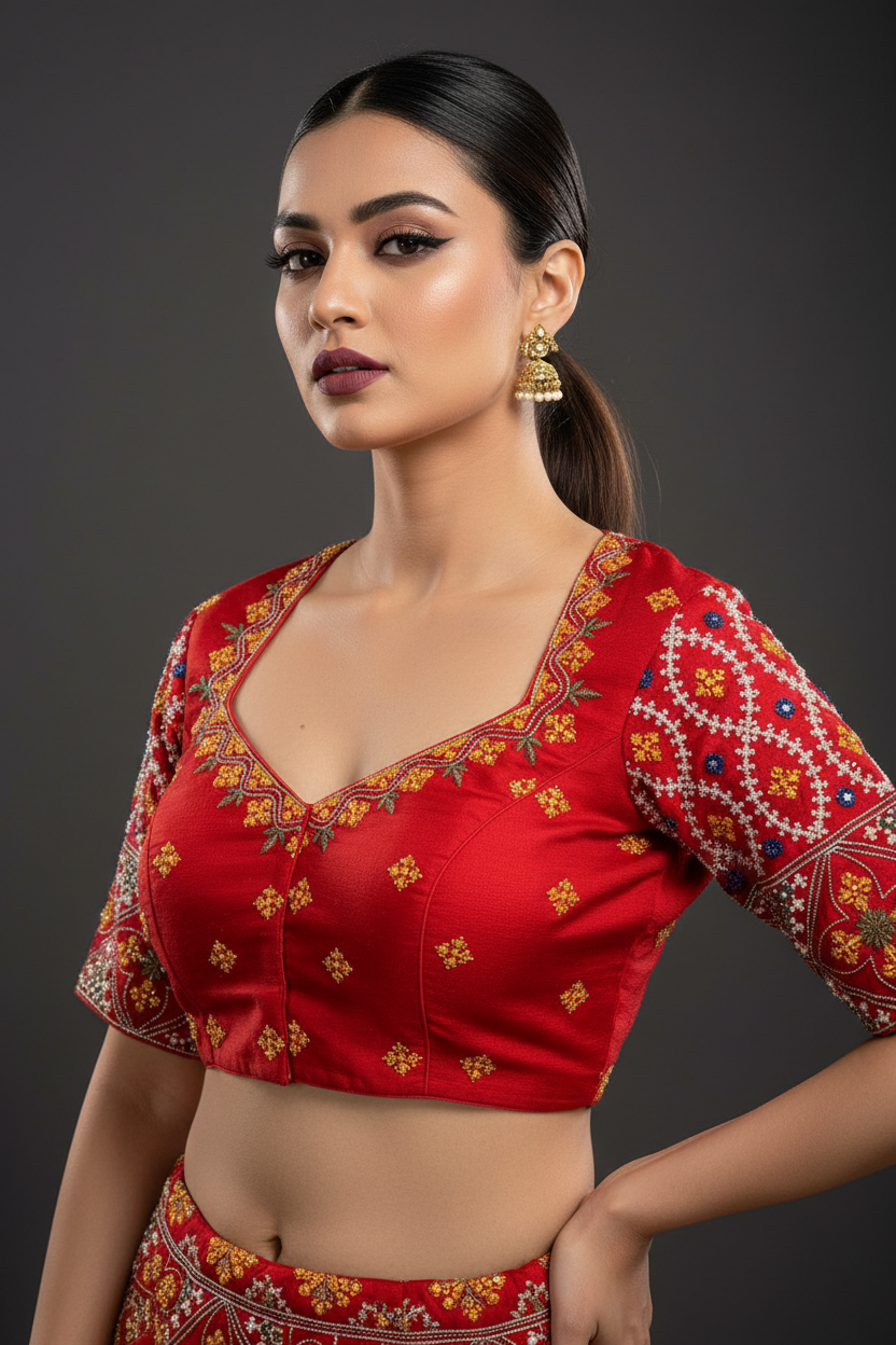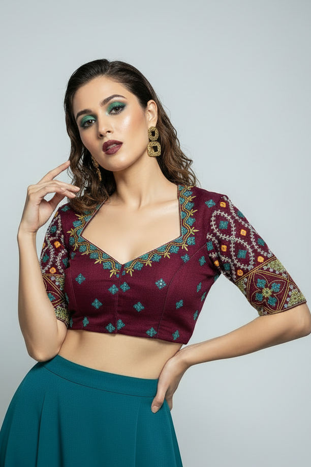 Made Of Vichitra Silk-Designer Blouse(Wine)