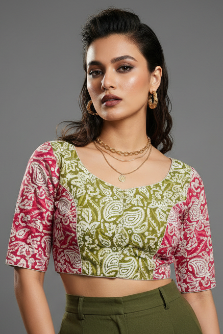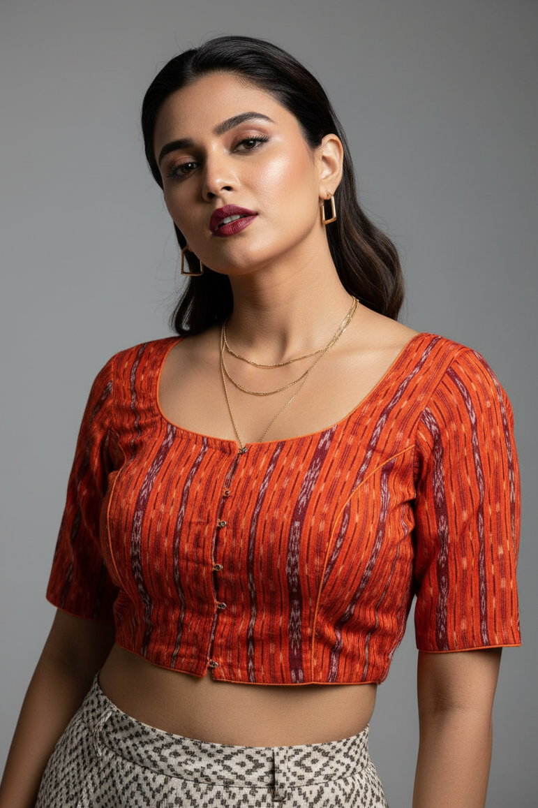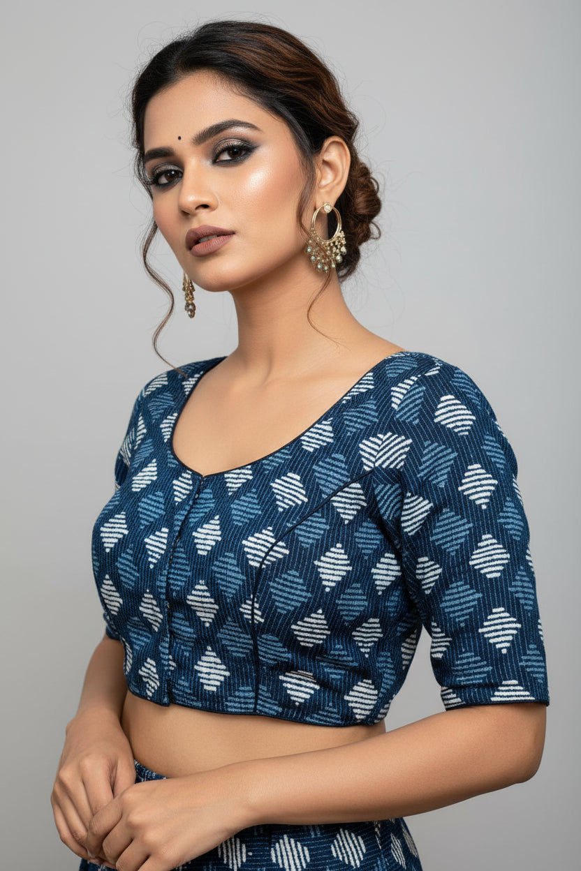 Ikkat Elegance - Printed Cotton Designer Blouse