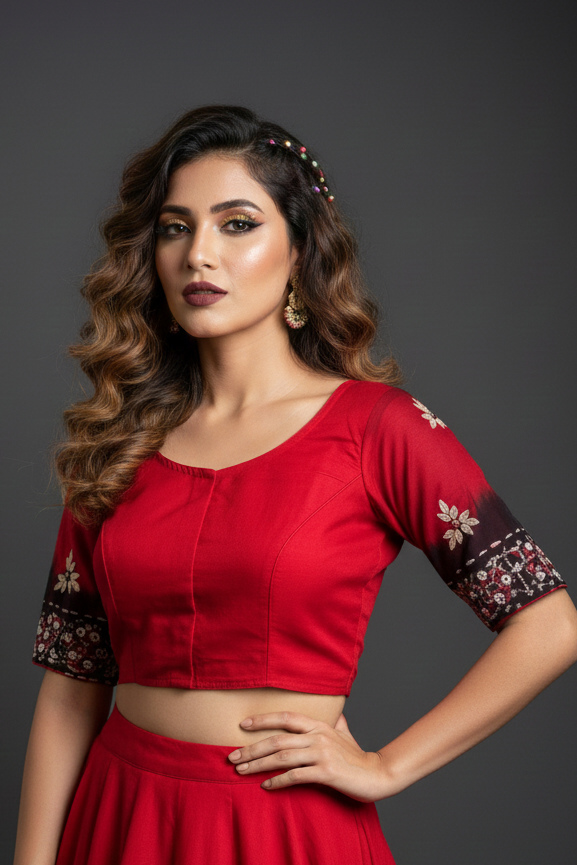 Need to make a statement? Our Designer Blouse has got you covered! The unique design and fancy style set it apart from the rest. Plus, its princess cut and Deep boat neck create the perfect look for any saree.