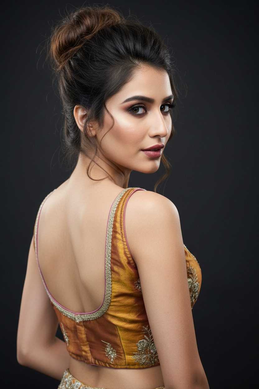 - The displayed model image is AI-generated to demonstrate the saree/kurti/dress/lehenga/blouse/cords set drape and elegance. Actual product color and details may vary slightly. Please review the original product images for precise representation.