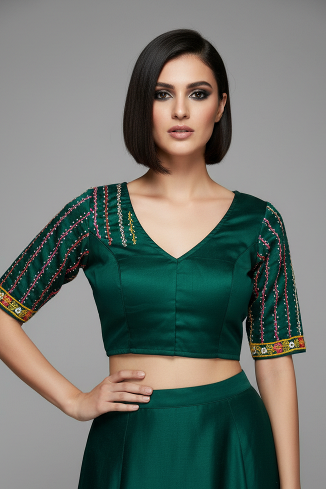 A perfect blend of tradition and conscious fashion, this multi color hand Hand Stitched blouse is crafted with care by skilled artisans. Made from breathable fabric, it features Premium Cotton with silk finish fabric that celebrate slow fashion and timeless style.