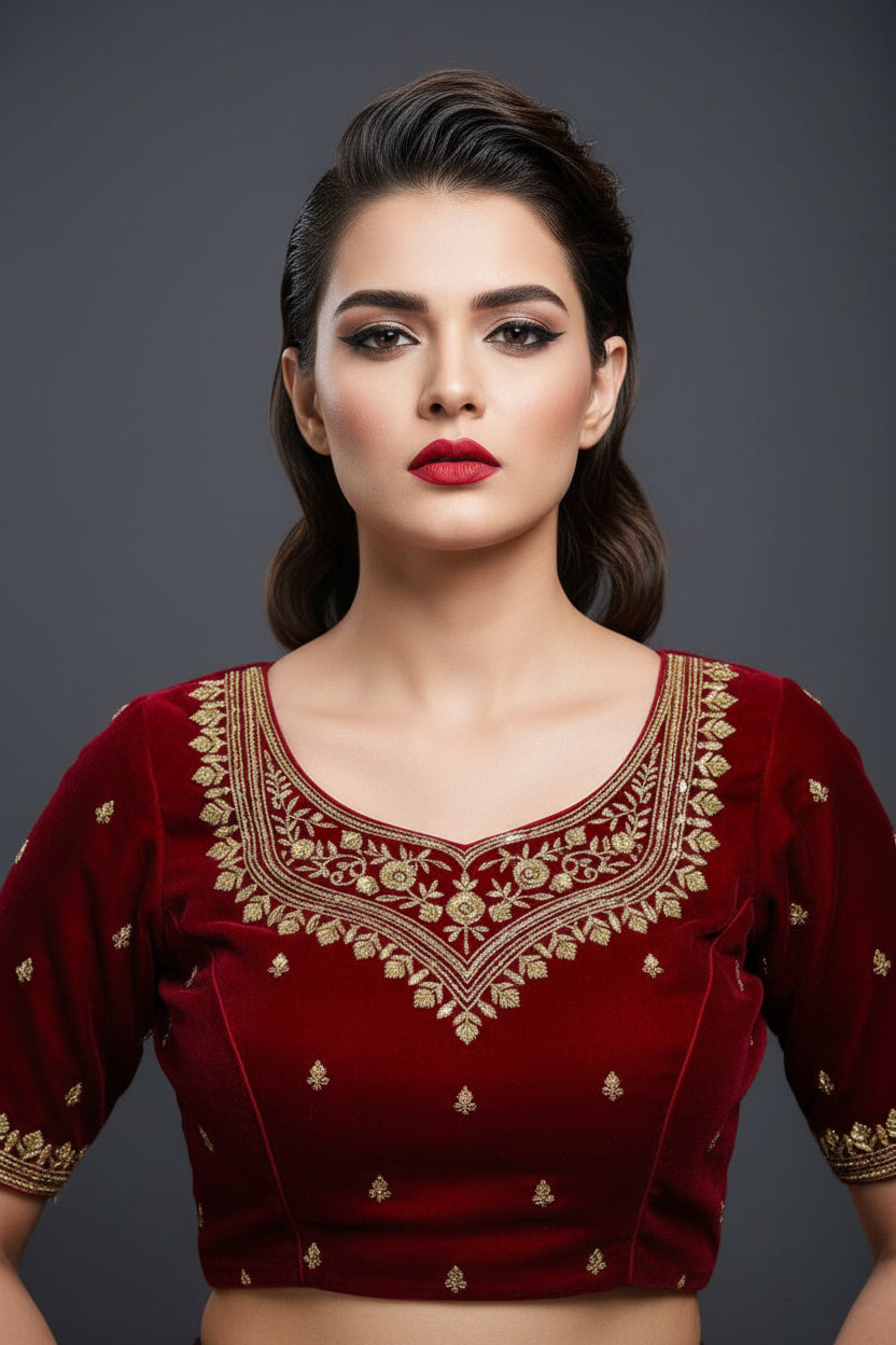 The displayed model image is AI-generated to demonstrate the Blouse styling and elegance. Actual product color and details may vary slightly. Please review the original product images for precise representation.