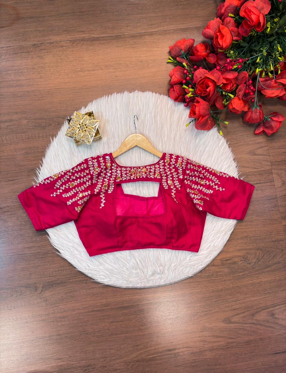 Discover amazing bargains with our new Designer Blouse! Made from soft Vichitra Silk fabric and adorned with stunning fancy Embroidery and Sequins Zari work, this Blouse offers the perfect combination of fashion and comfort. Shop now in XS to 3XL sizes!