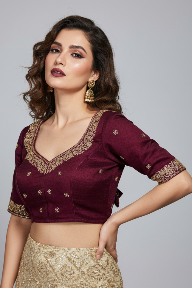 Be ready to stand out in the crowd with the Fancy Designer Blouse! Featuring unparalleled Style , intricate sequins with Embroidery work, and distinct Style , this Blouse is guaranteed to catch attention. Embrace the latest trends and pay tribute to diverse cultures with this must-have blouse. Its versatility provides a "all in one" experience, great for any event. Don't hesitate, seize these discounts now!