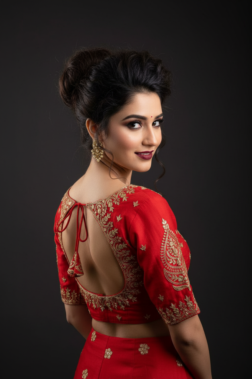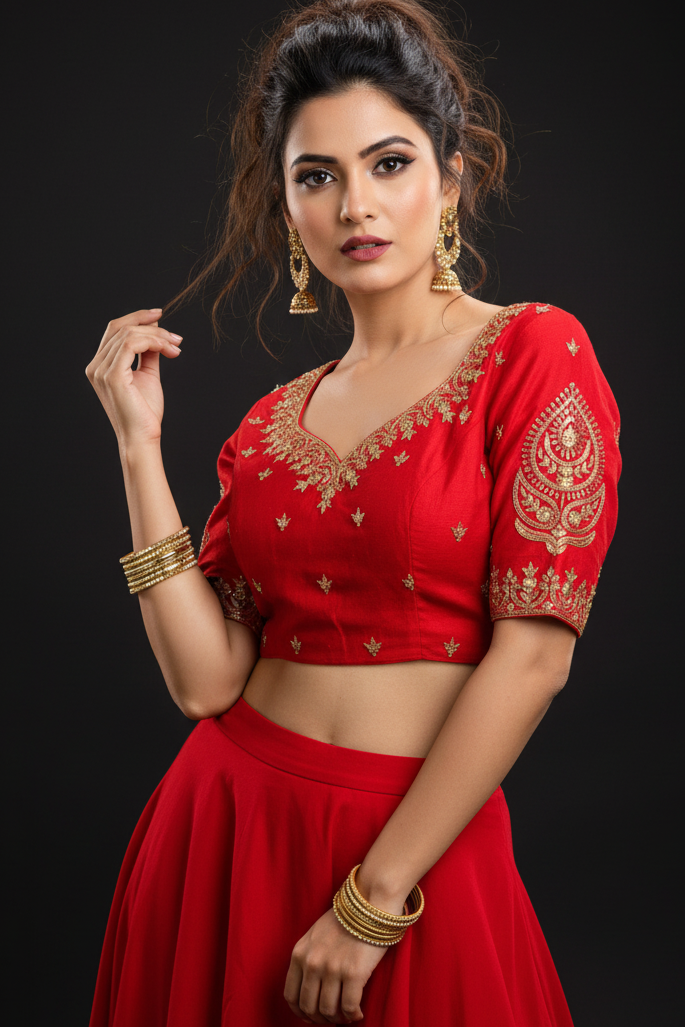 - The displayed model image is AI-generated to demonstrate the saree/kurti/dress/lehenga/blouse/cords set drape and elegance. Actual product color and details may vary slightly. Please review the original product images for precise representation.