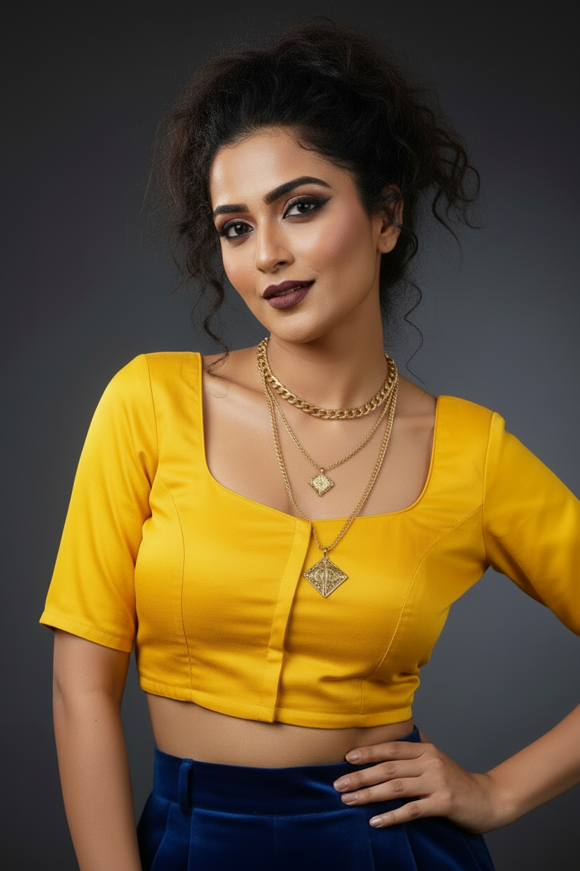 Hurry and snag these savings! Our New Designer Blouse will add a touch of elegance and luxury, made with Cotton material and a Silk finish, adorned with intricate Solid Color . Take your pick from sizes XS to 3XL - buy it now!