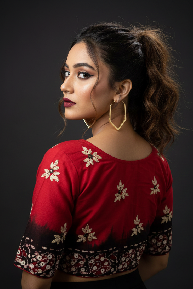 Emerging Red Hacoba- Designer Blouse