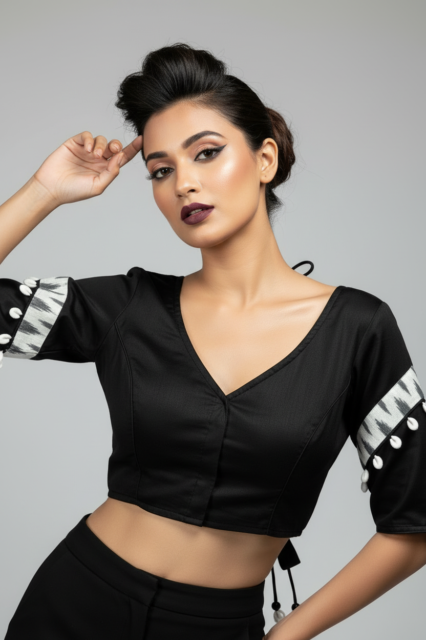 New Direction- Black Designer Blouse With Cowrie shells