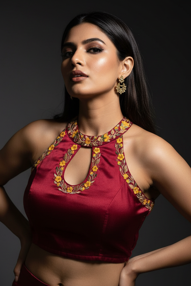 Made Of Vichitra Silk-Designer Blouse(Wine)