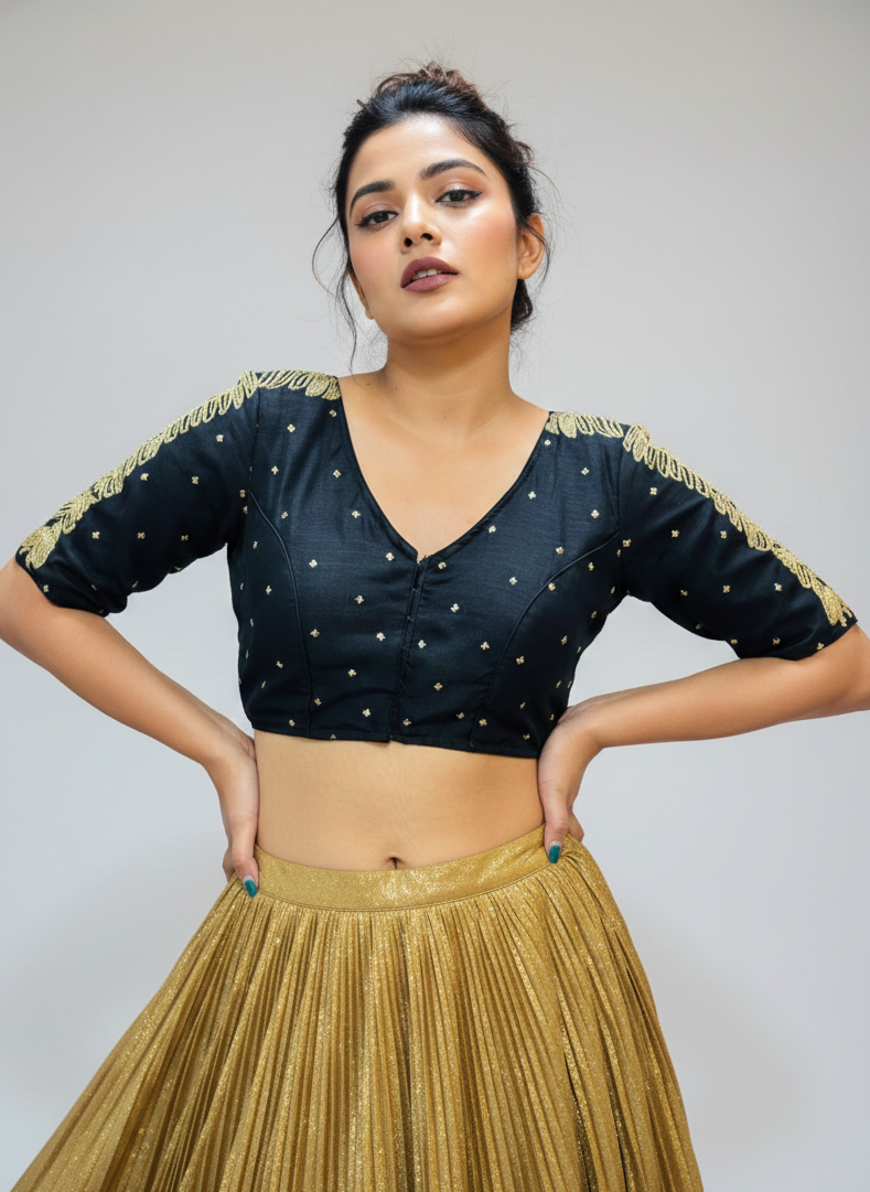 Black Vichitra Silk Blouse