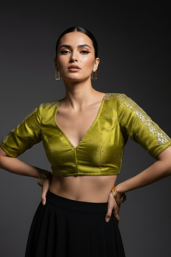 Green Vichitra Silk Blouse