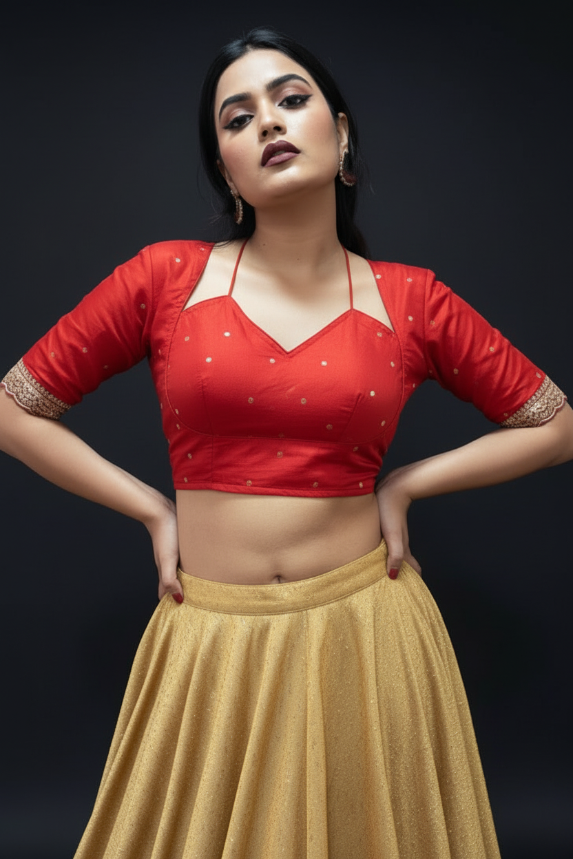 Red Masaba Style Vichitra Silk Blouse