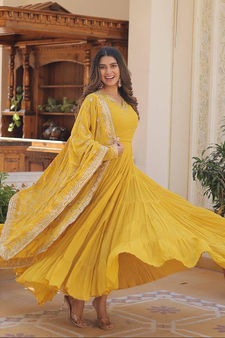 Maroon Mehfil Georgette Gown Set