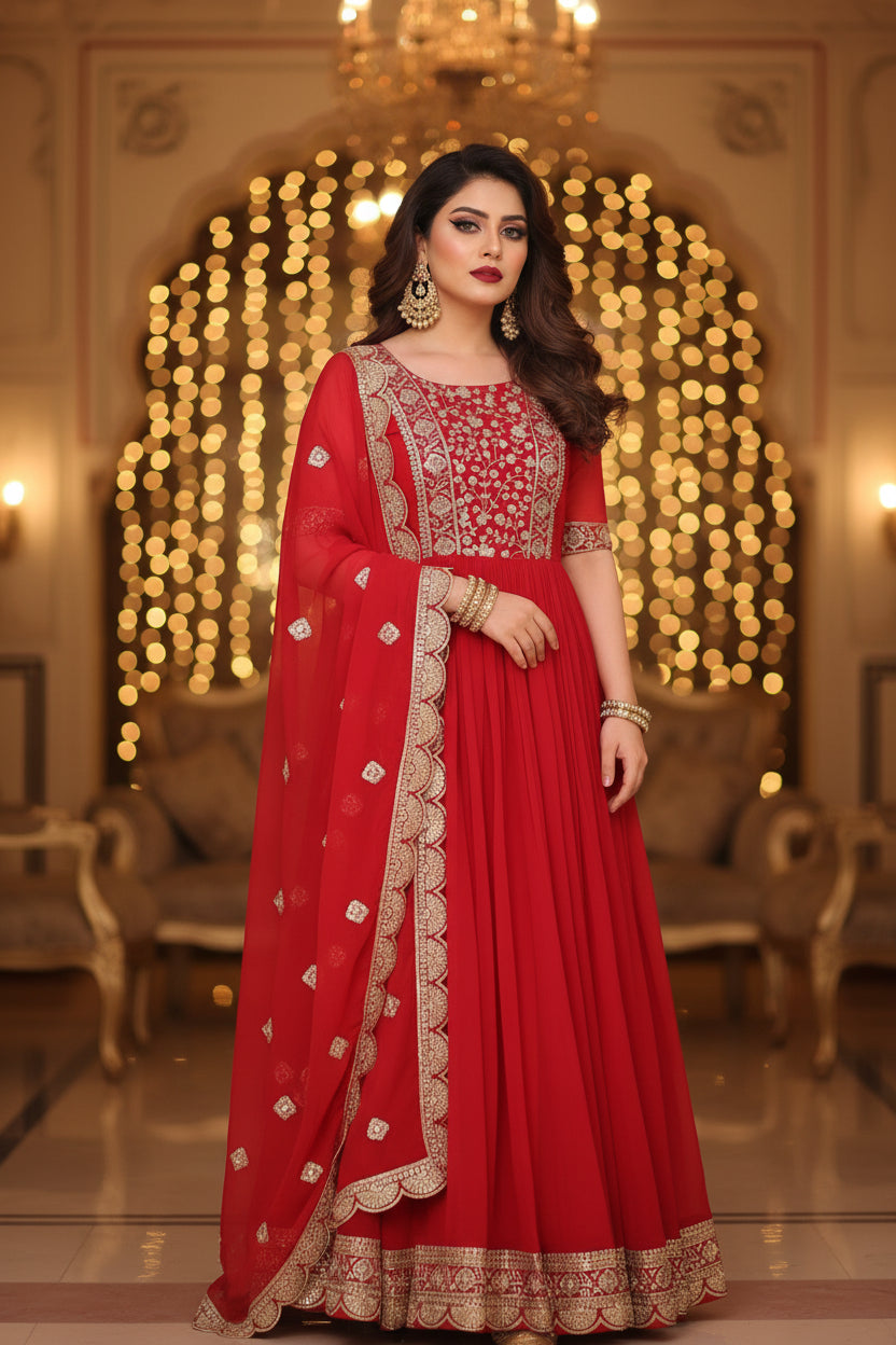- Gown Fabric - Fancy silk with Embroidery Zari Sequins-work