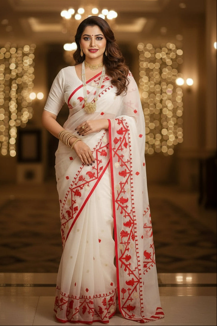Canvas of Bengal Organza Muslin Jamdani Saree