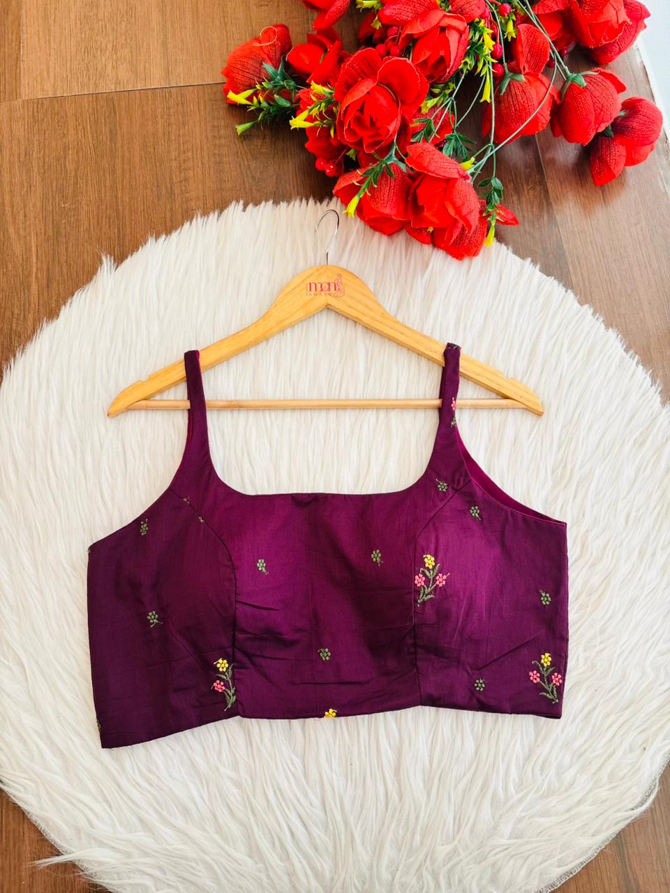 Hurry and snag these savings! Our New Designer Blouse will add a touch of elegance and luxury, made with Cotton material, adorned with intricate Solid Color and Embroidery work ,this fancy designer blouse will elevate your wardrobe with its sleeveless design and Halter neck. Perfect for any occasion, this blouse brings a touch of elegance to your style.