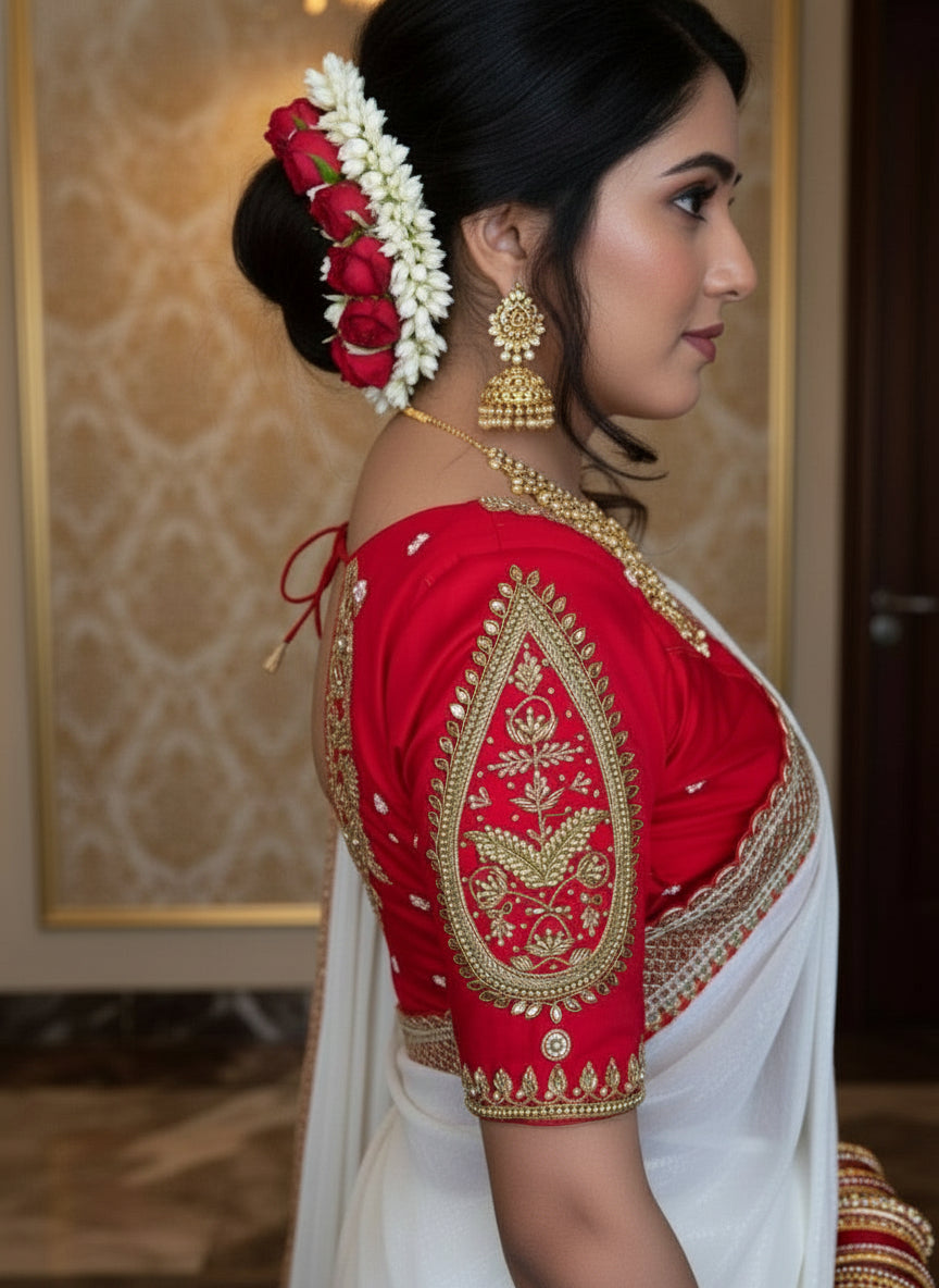 Look no further for the perfect addition to any outfit - our Designer Blouse! A one-of-a-kind design and style make this Blouse the ultimate statement piece. The princess cut and fashionable back add a touch of sophistication to any Saree.