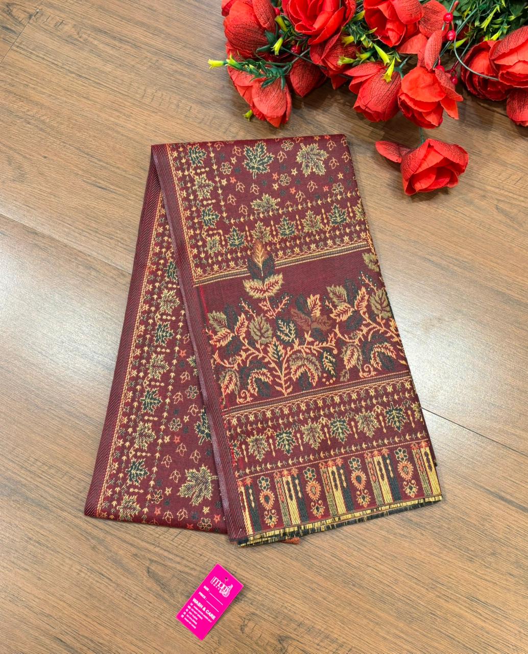 - kaani woven design shawl has beautiful border [ woolen blended]