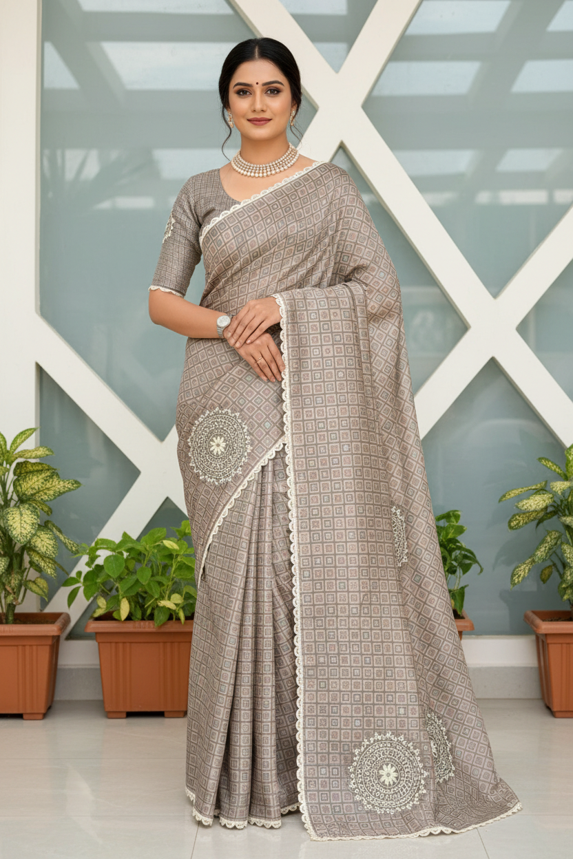 - The displayed model image is AI-generated to demonstrate the saree’s drape and elegance. Actual product color and details may vary slightly. Please review the original product images for precise representation.