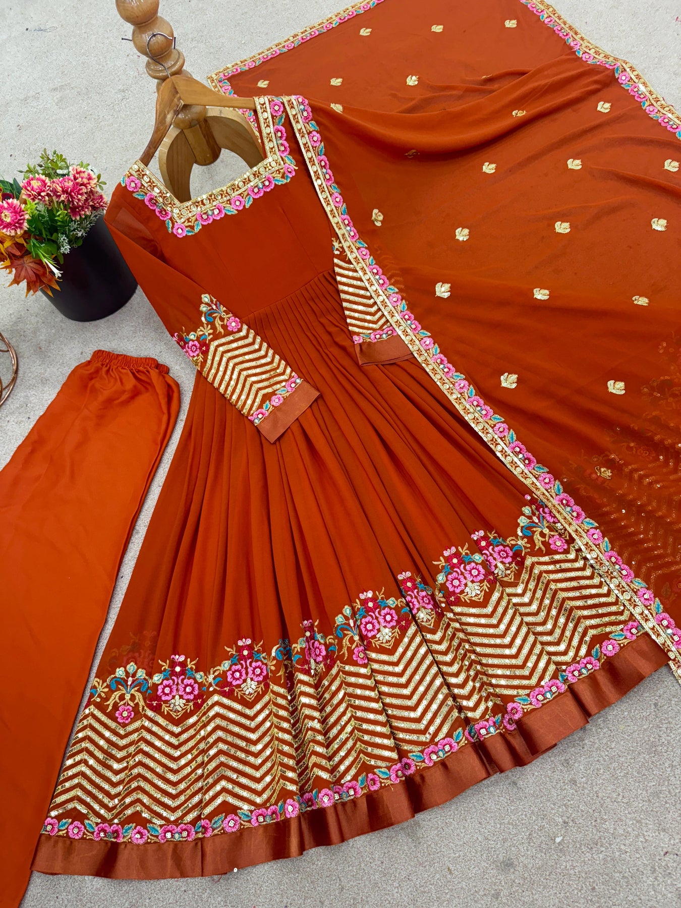 Fabric: Heavy Georgette with sequins embroidery work
