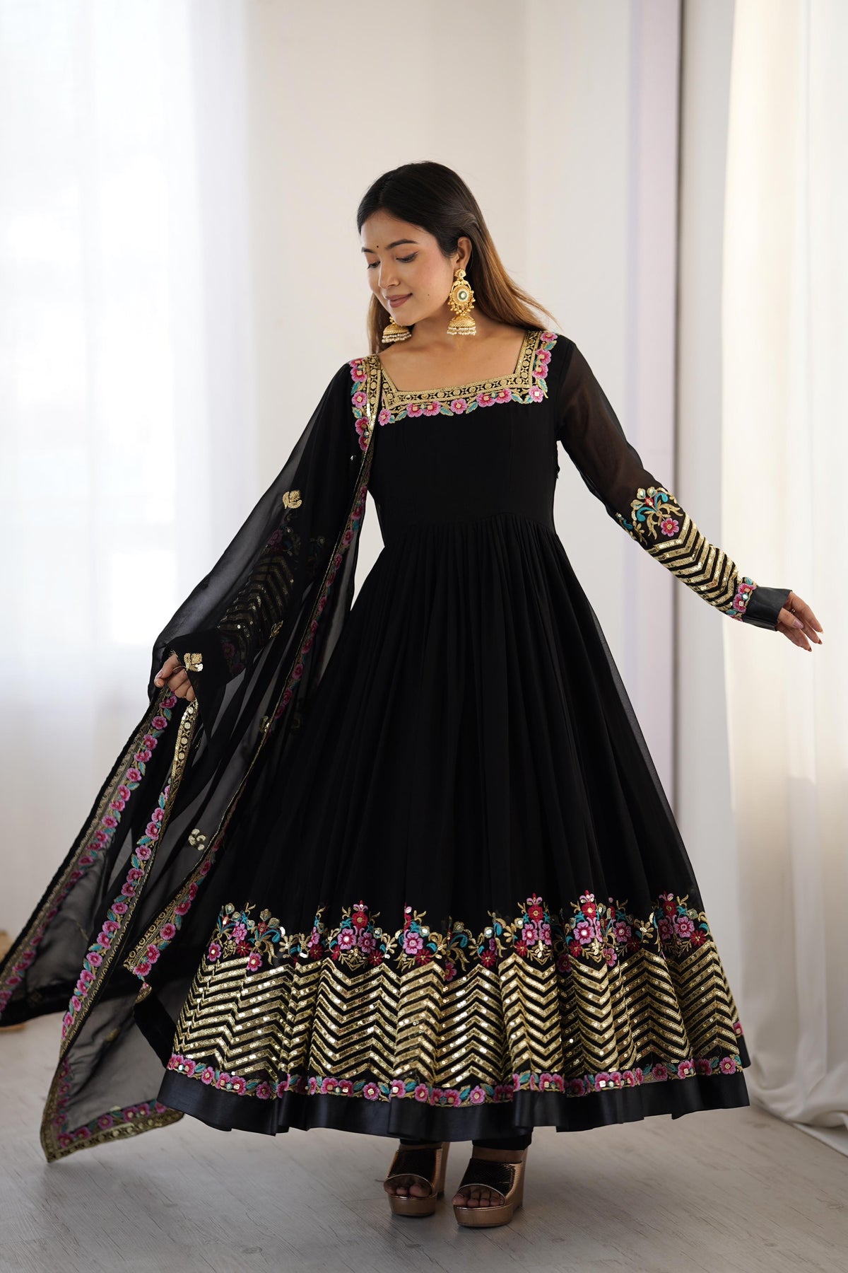 Blessings With Echo of You Partywear Georgette Gown Set allows you to express your timeless beauty. It is noted for its elegant and sophisticated appearance, which is achieved using the finest heavy georgette fabric and sequins thread embroidery work . Its easy-to-wear design makes it appropriate for any occasion. This traditional and elegant ornament will elevate your look.