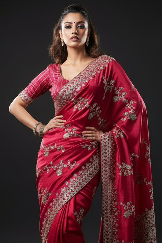 • The displayed model image is AI-generated to demonstrate the saree’s drape and elegance. Actual product color and details may vary slightly. Please review the original product images for precise representation.