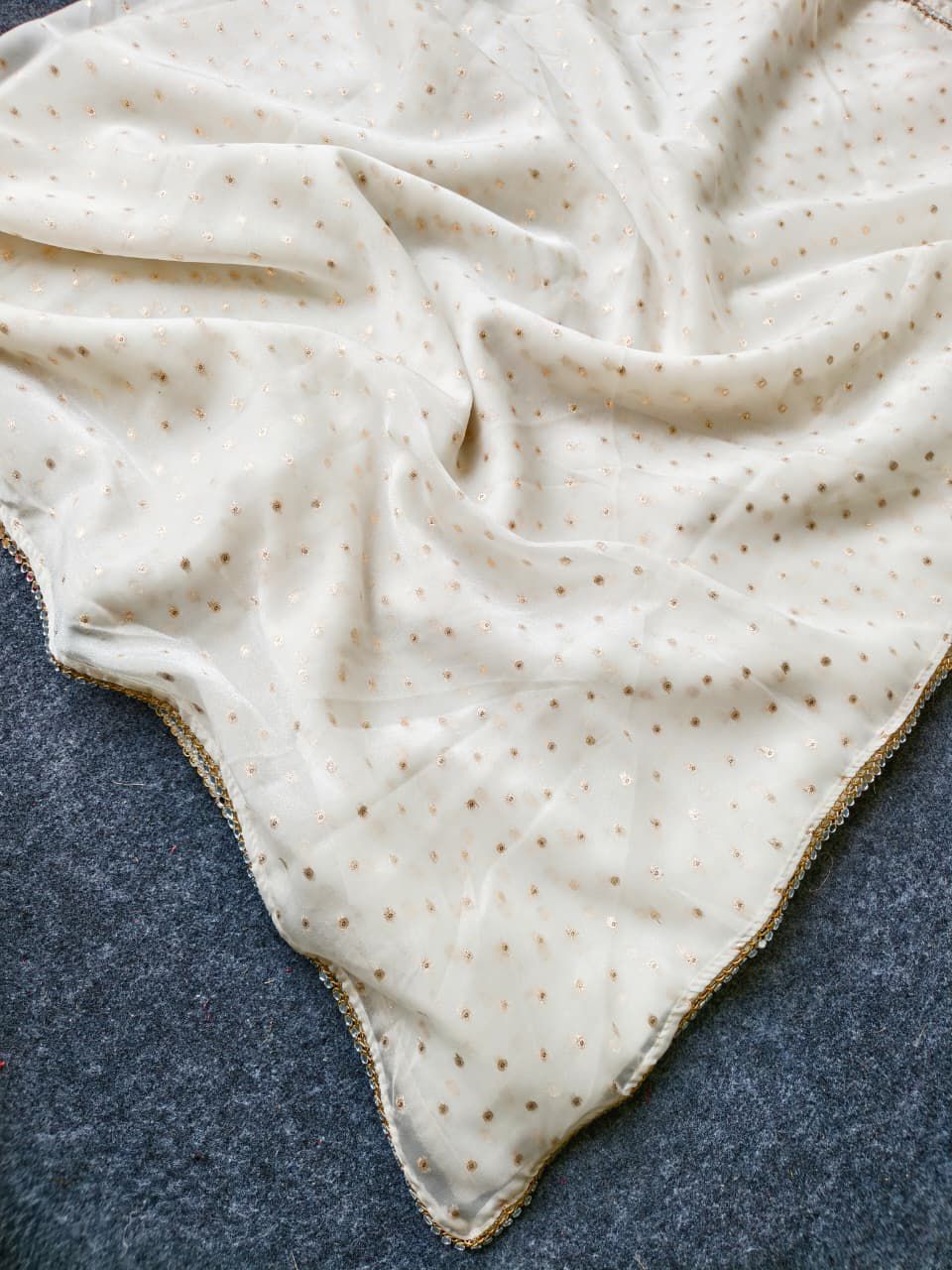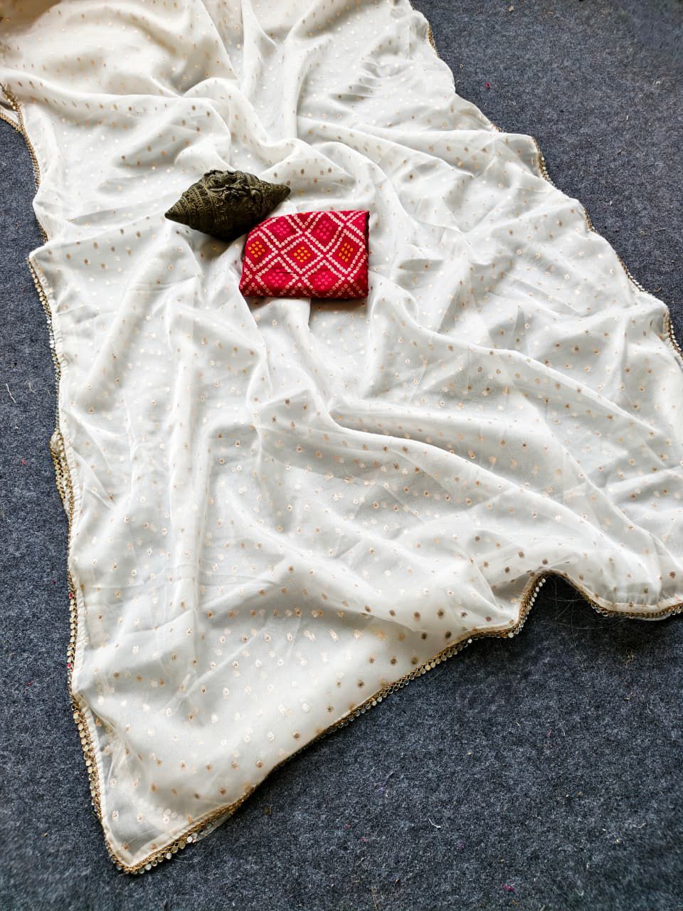 • This chiffon organza silk saree has beautiful white colour with buttis work