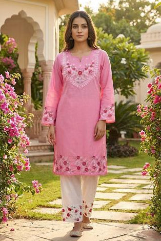 Crafted from premium pure cotton. This stunning set features delicate front embroidery that highlights the richness of tradition with a modern twist. Lightweight, breathable, and perfect for all-day wear, it's a must-have for anyone looking to add a calming yet aesthetic outfit to their wardrobe.